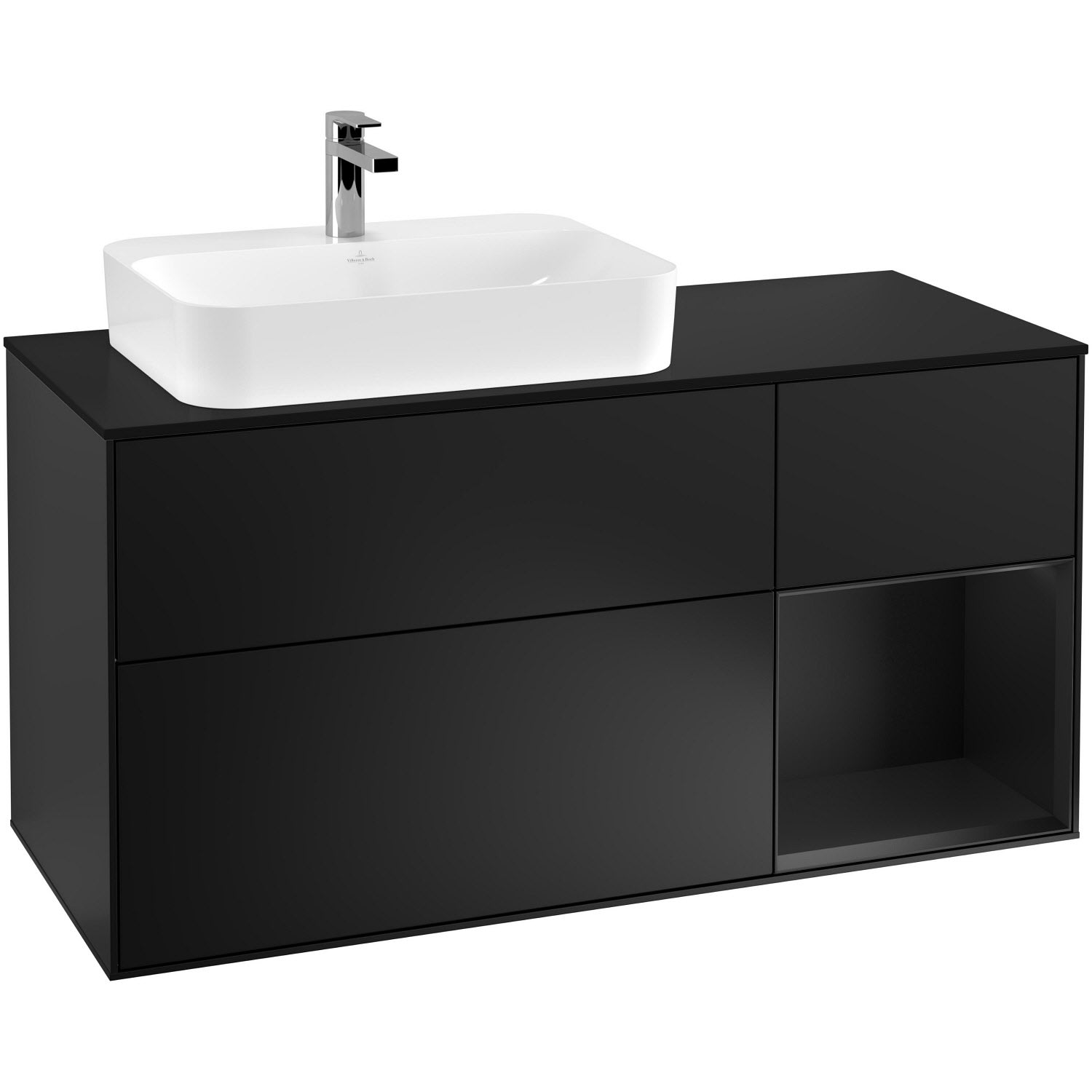 Villeroy & Boch Finion Waschtischunterschrank 120 cm mit Regalelement rechts, Abdeckplatte, Wandbeleuchtung