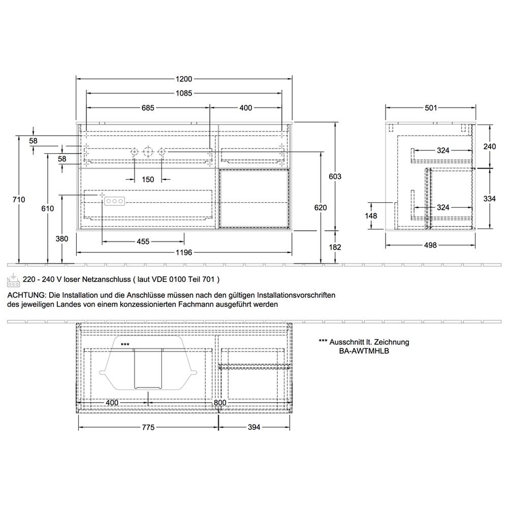 Definierte Waschbecken bitte separat bestellen (ein Beispiel finden Sie im Zubehör).