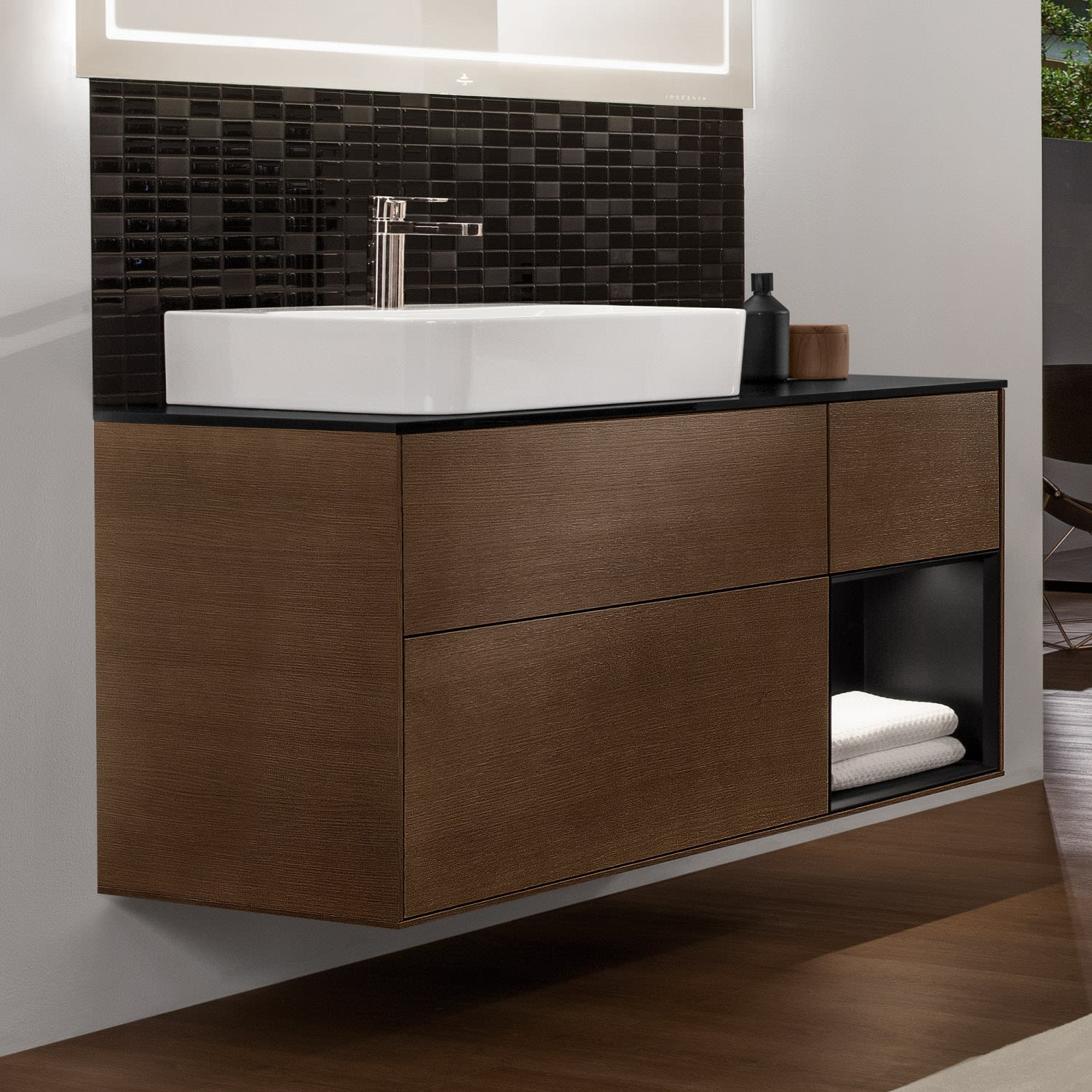 Villeroy & Boch Finion Waschtischunterschrank 120 cm mit Regalelement rechts, Abdeckplatte