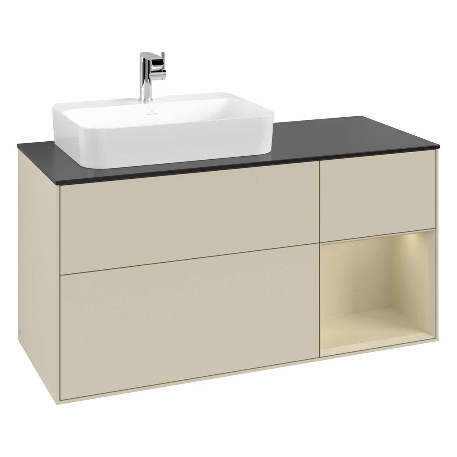 Villeroy & Boch Finion Waschtischunterschrank 120 cm mit Regalelement rechts, Abdeckplatte