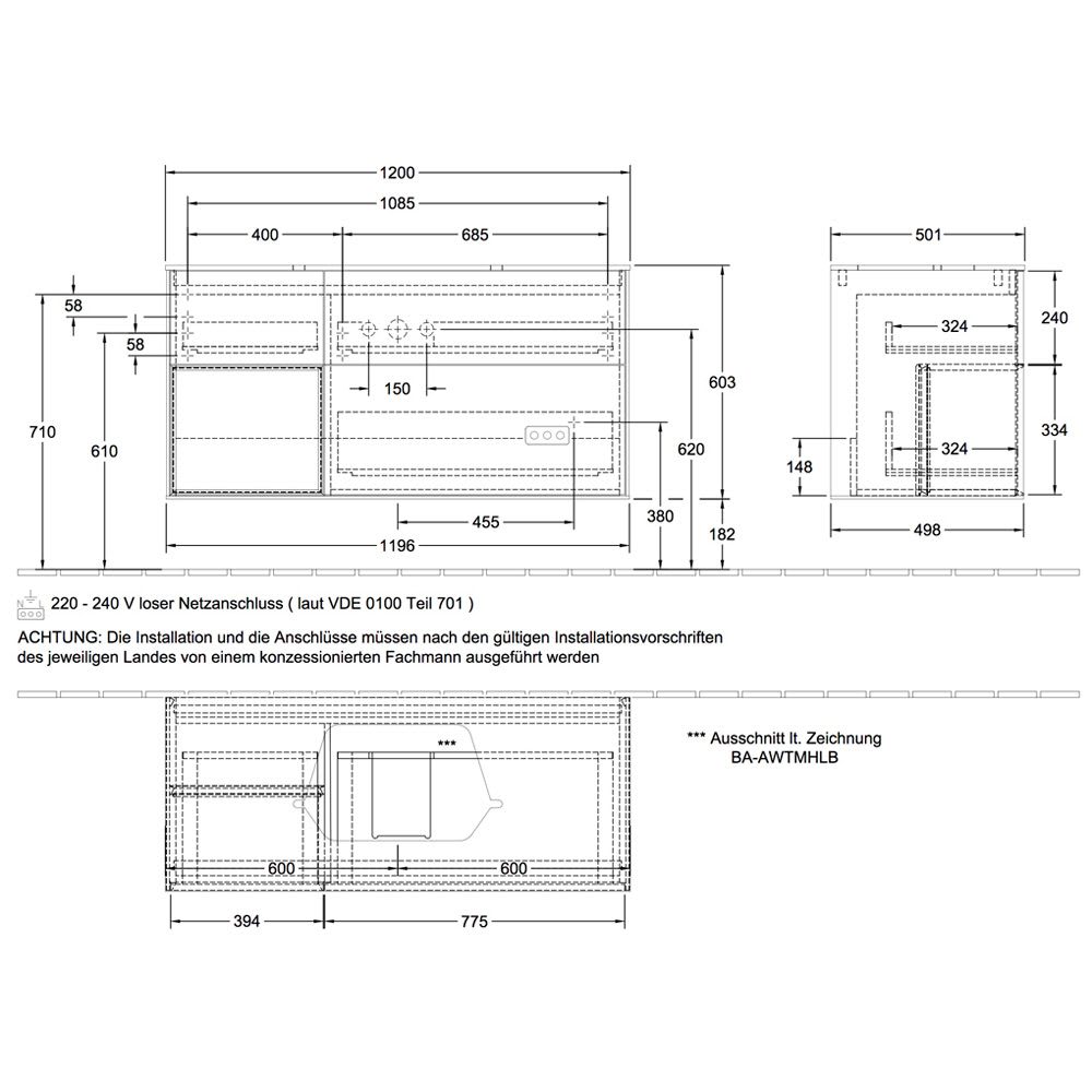 Villeroy & Boch Finion Waschtischunterschrank 120 cm mit Regalelement links, Abdeckplatte