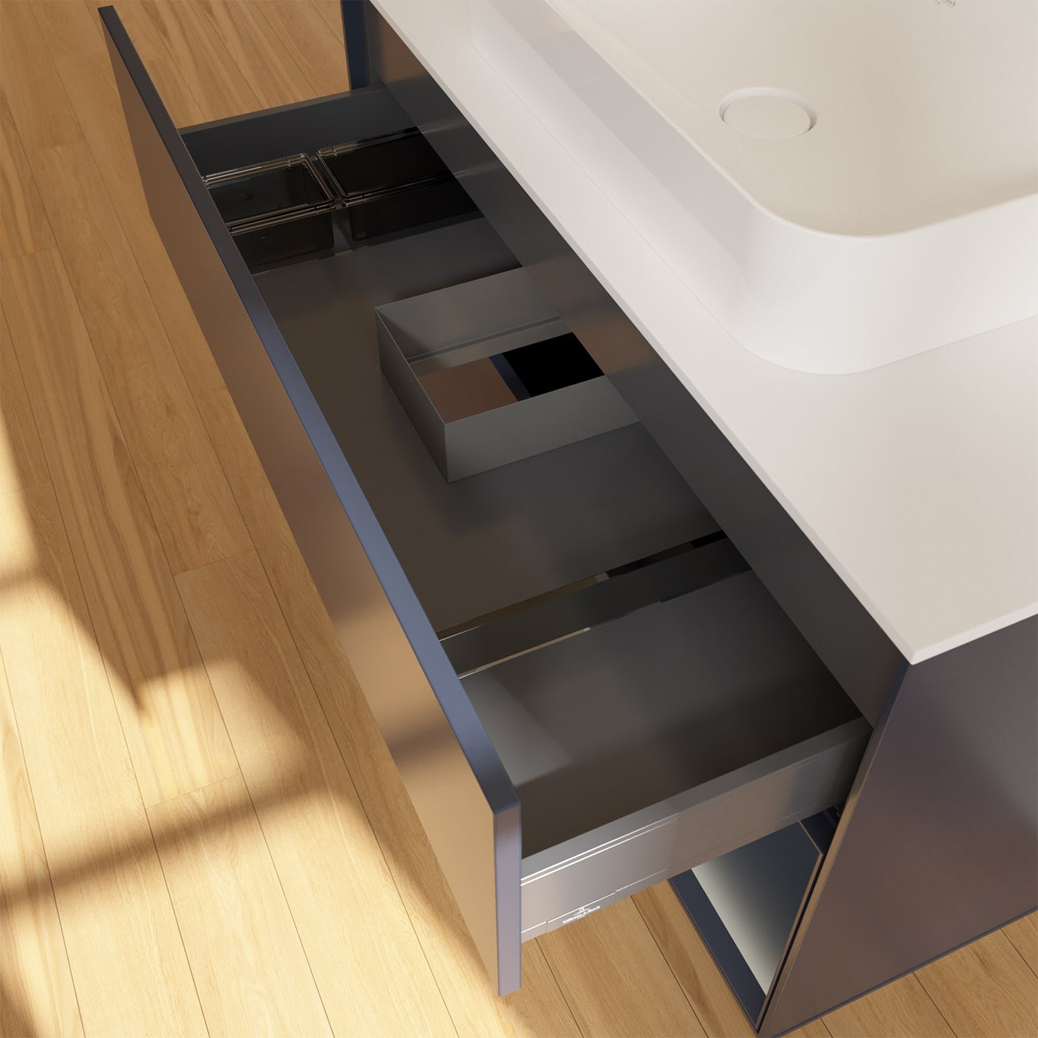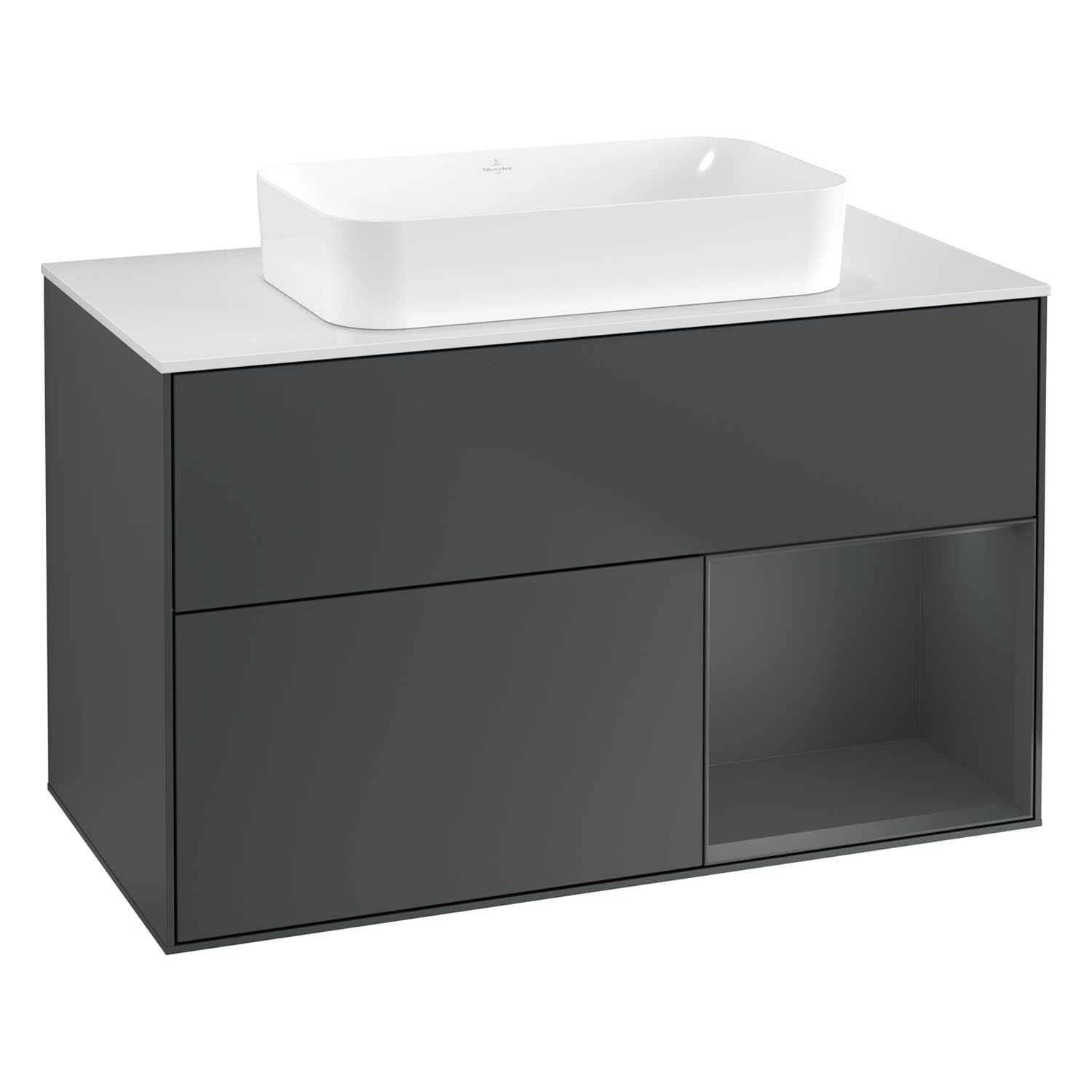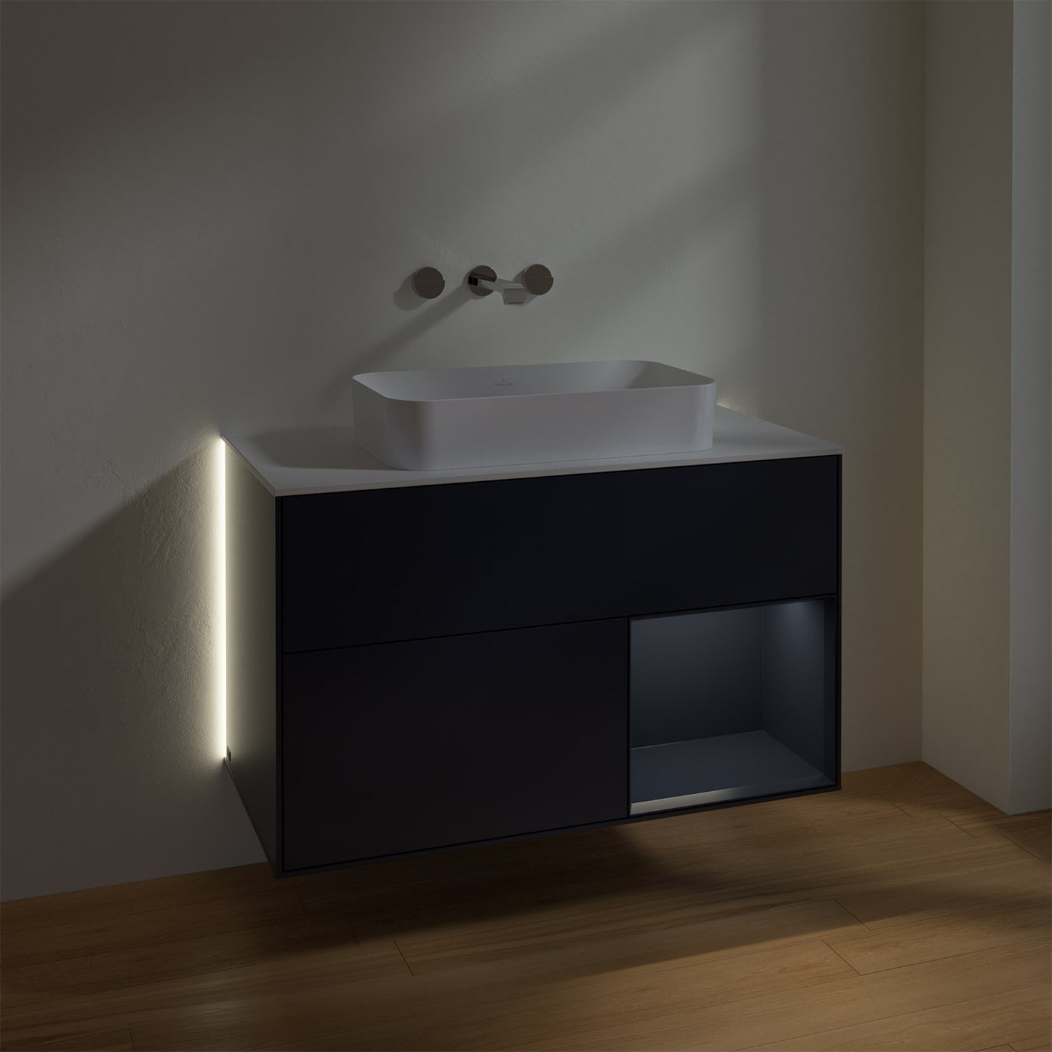 Villeroy & Boch Finion Waschtischunterschrank 100 cm mit Regalelement rechts und Abdeckplatte, mit Wandbeleuchtung