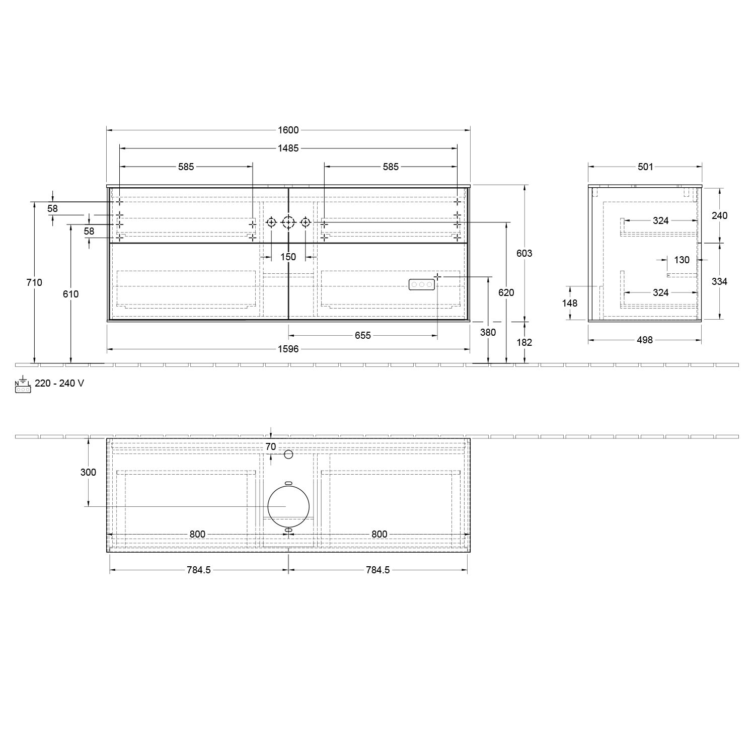 Villeroy & Boch Finion Waschtischunterschrank 160 cm mit Abdeckplatte und LED Wandbeleuchtung