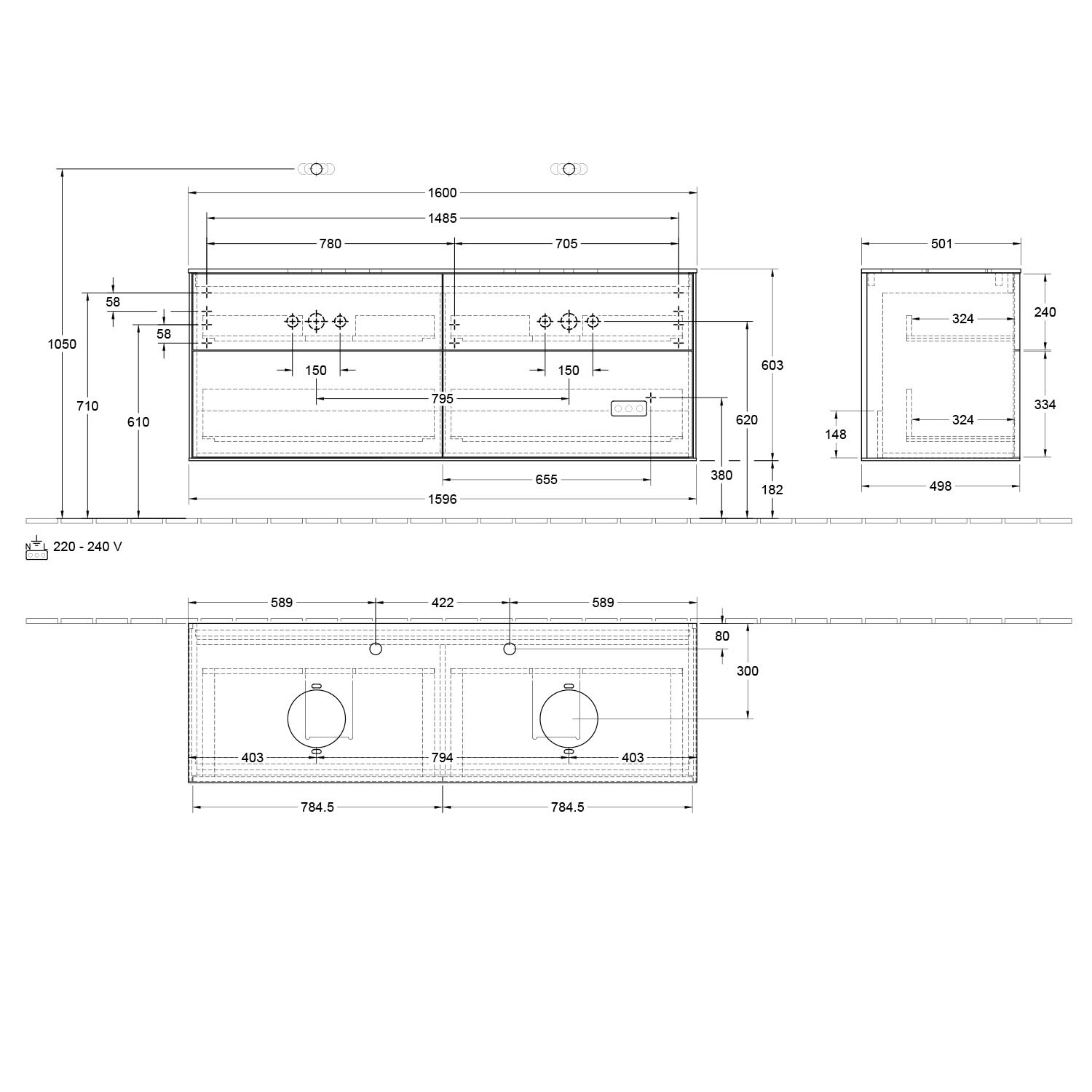 Villeroy & Boch Finion Waschtischunterschrank 160 cm mit Abdeckplatte und LED Wandbeleuchtung