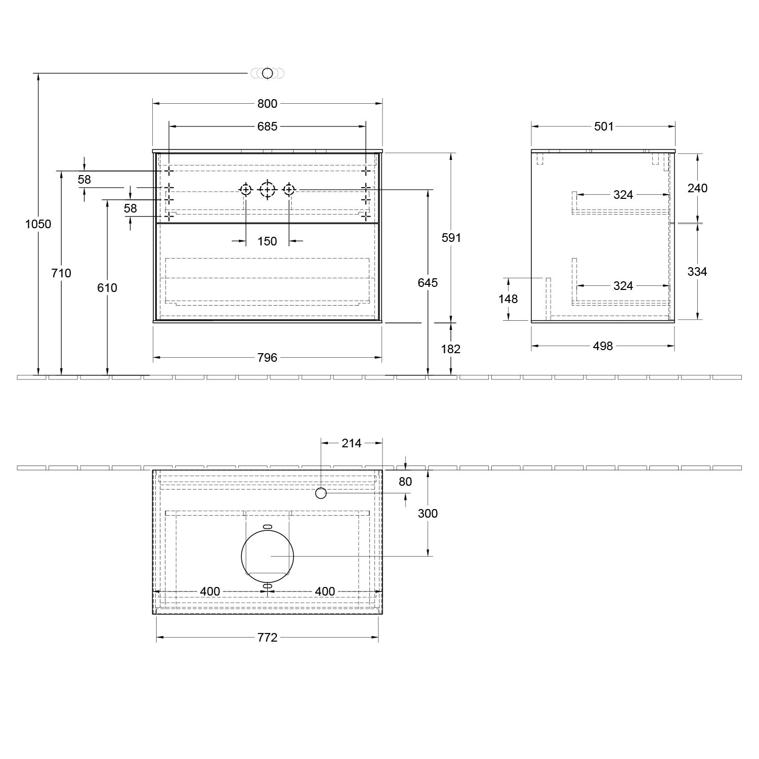 Villeroy & Boch Finion Waschtischunterschrank 80 cm mit Abdeckplatte