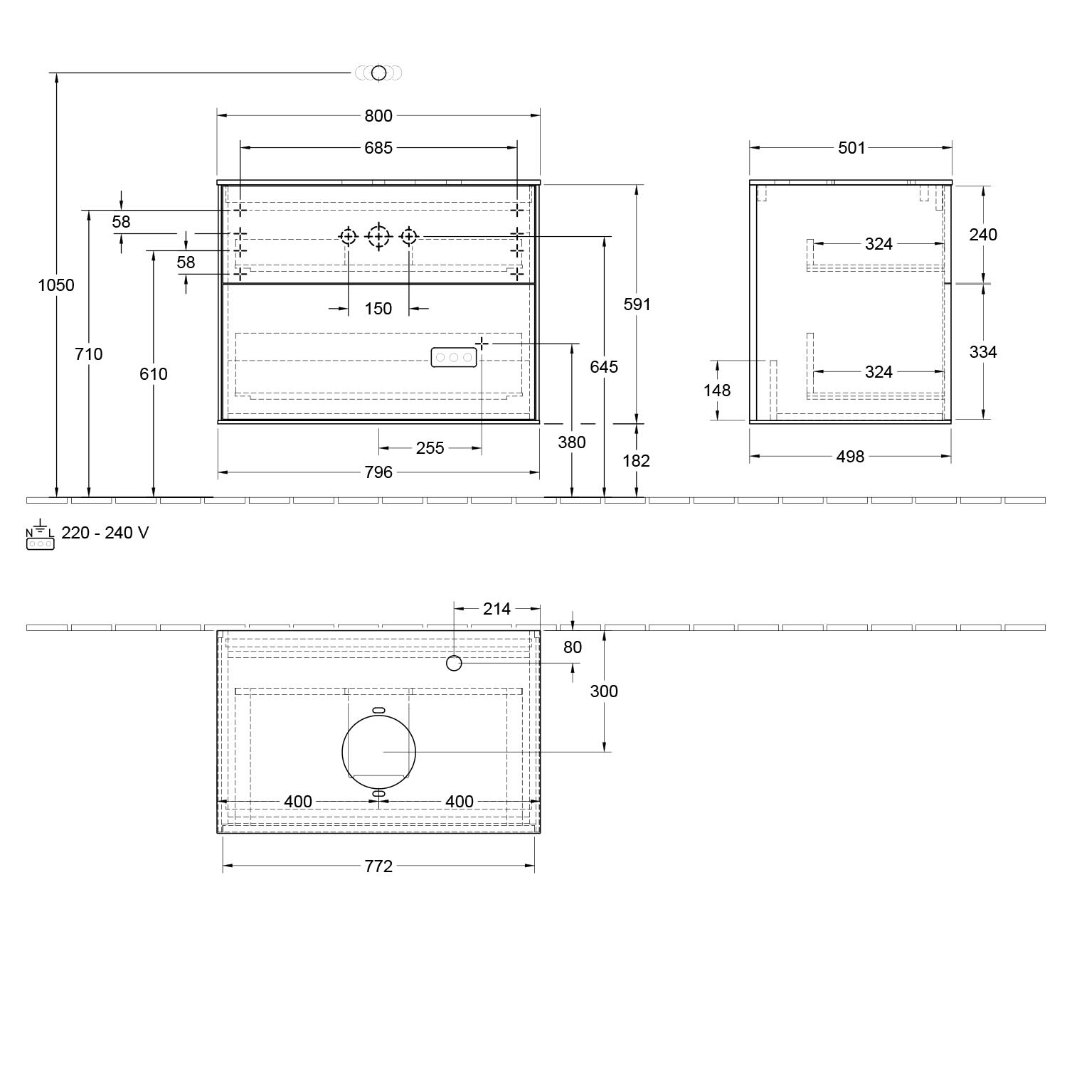 Villeroy & Boch Finion Waschtischunterschrank 80 cm mit Abdeckplatte und LED Wandbeleuchtung