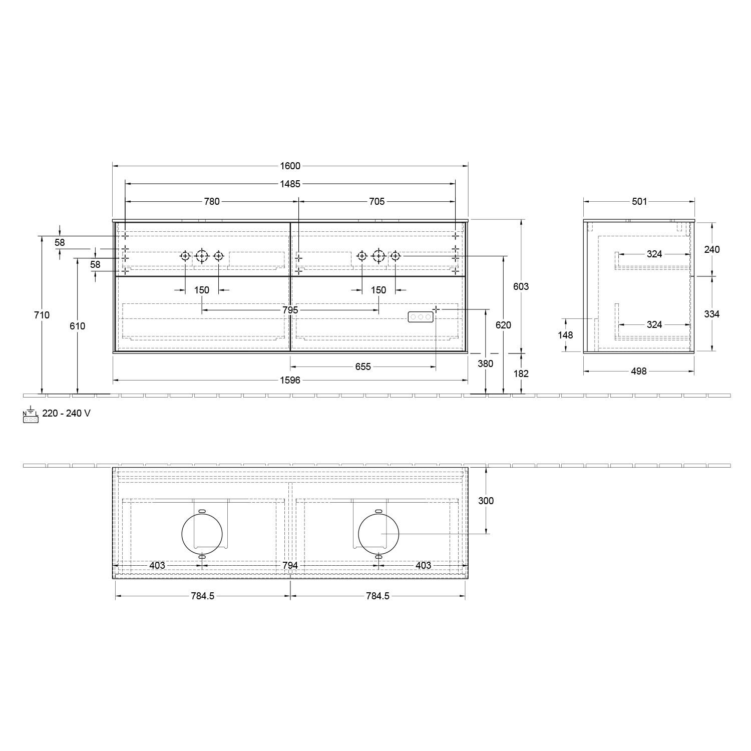 B: 160 T: 50,1 H: 60,3 cm