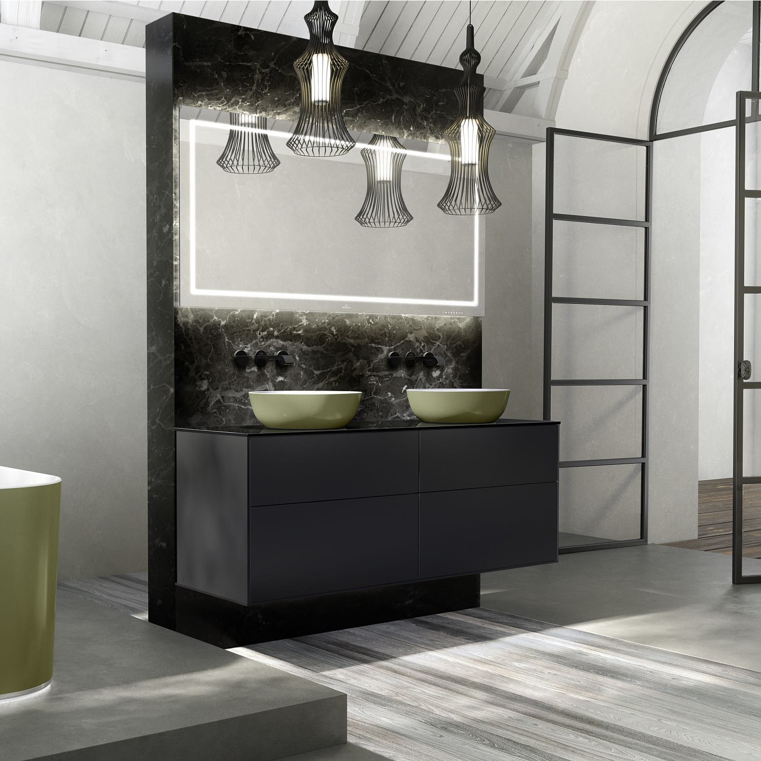 Villeroy & Boch Finion Waschtischunterschrank 160 cm mit Abdeckplatte und LED Wandbeleuchtung