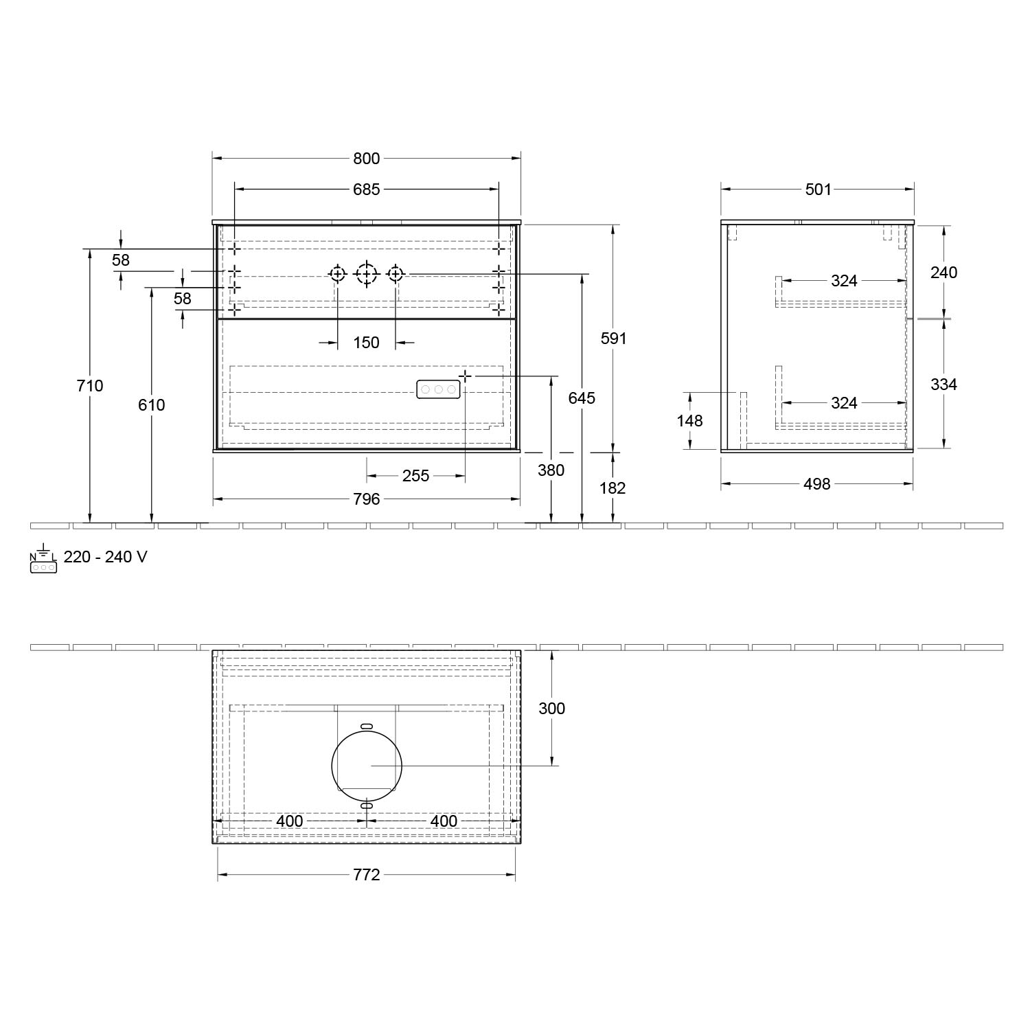 Villeroy & Boch Finion Waschtischunterschrank 80 cm mit Abdeckplatte und LED Wandbeleuchtung