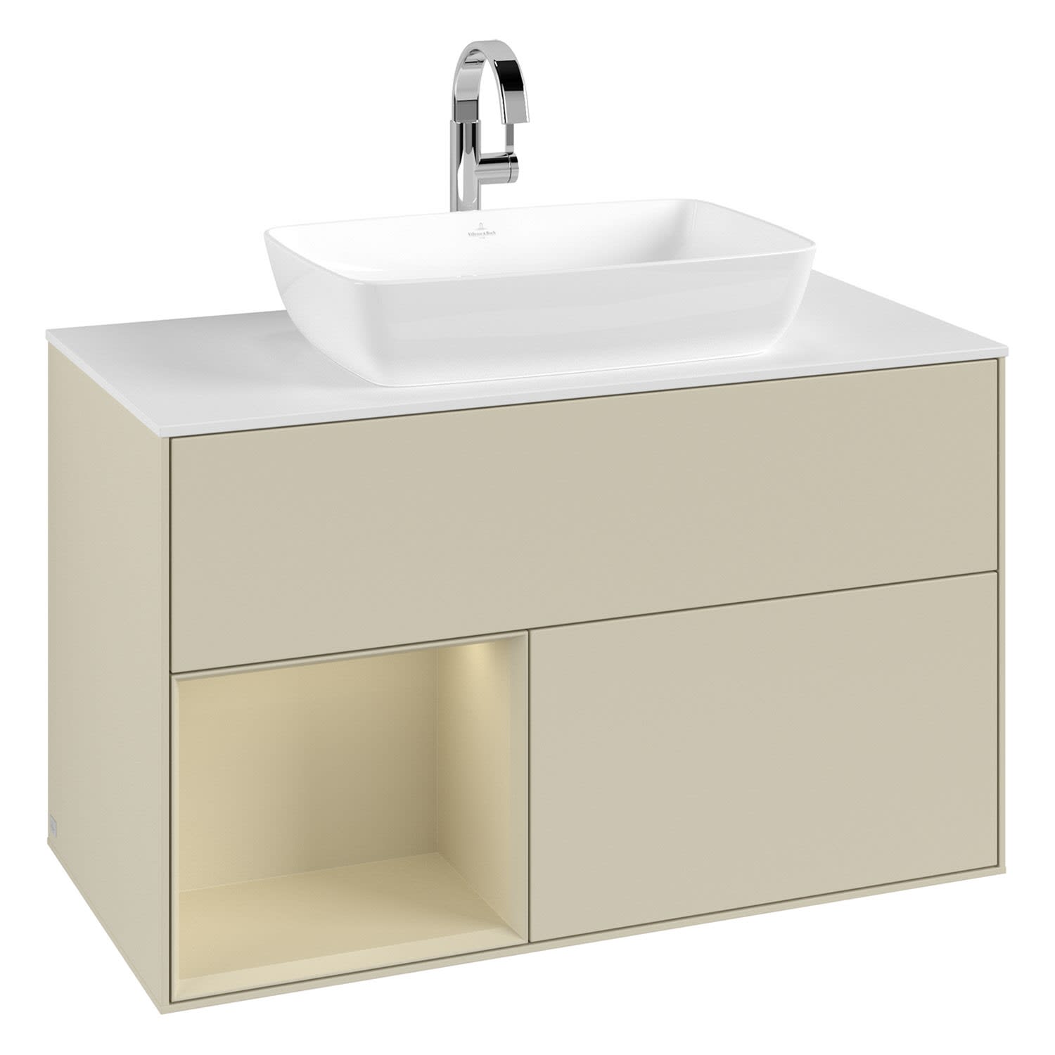 Villeroy & Boch Finion Waschtischunterschrank 100 cm mit Regalelement links, Abdeckplatte