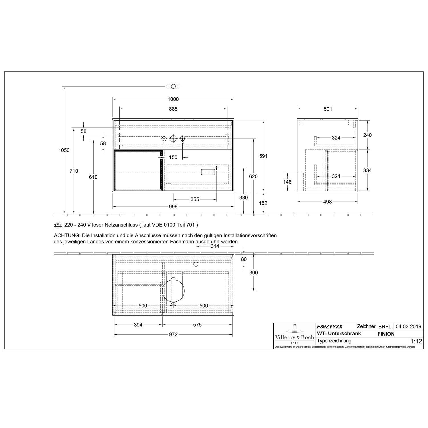 Definierte Waschbecken bitte separat bestellen (ein Beispiel finden Sie im Zubehör).