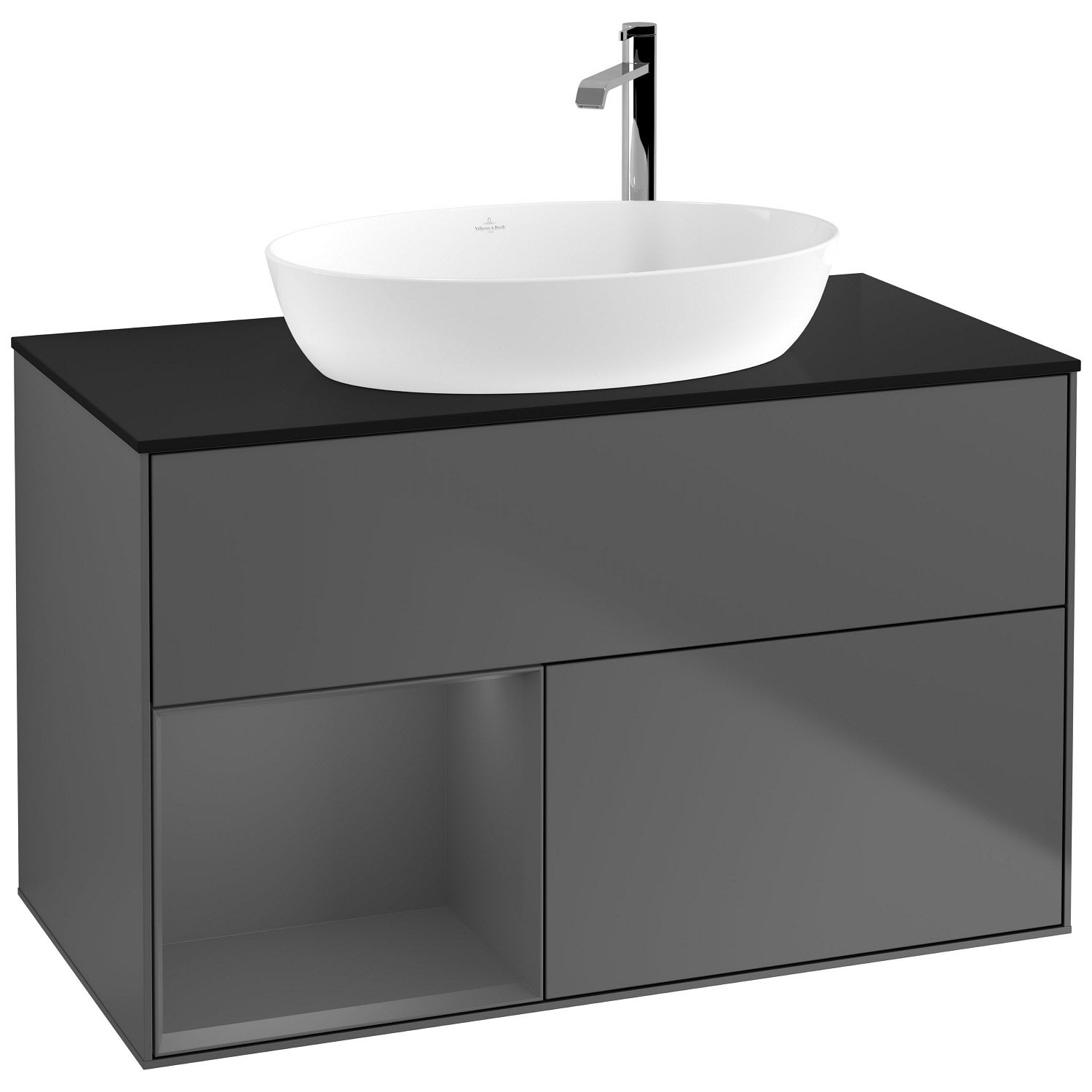 Villeroy & Boch Finion Waschtischunterschrank 100 cm mit Regalelement links, Abdeckplatte, Wandbeleuchtung