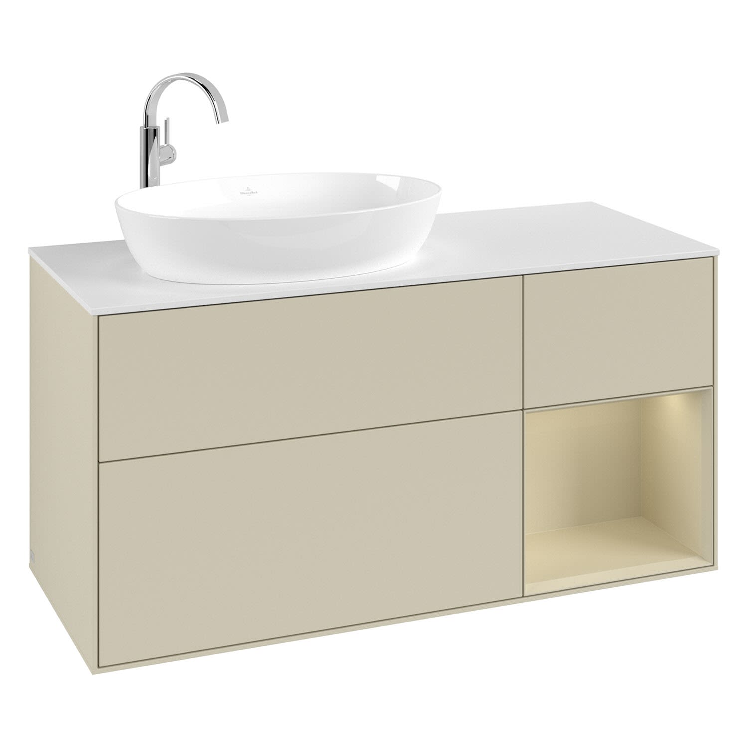 Villeroy & Boch Finion Waschtischunterschrank 120 cm mit Regalelement rechts, Abdeckplatte
