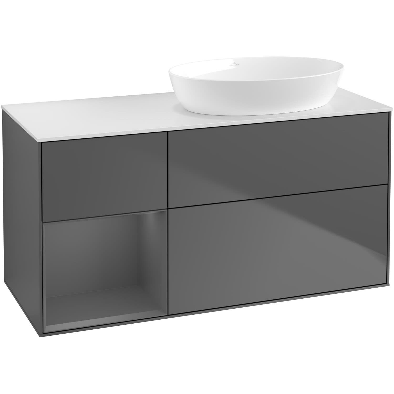 Villeroy & Boch Finion Waschtischunterschrank 120 cm mit Regalelement links, Abdeckplatte, Wandbeleuchtung