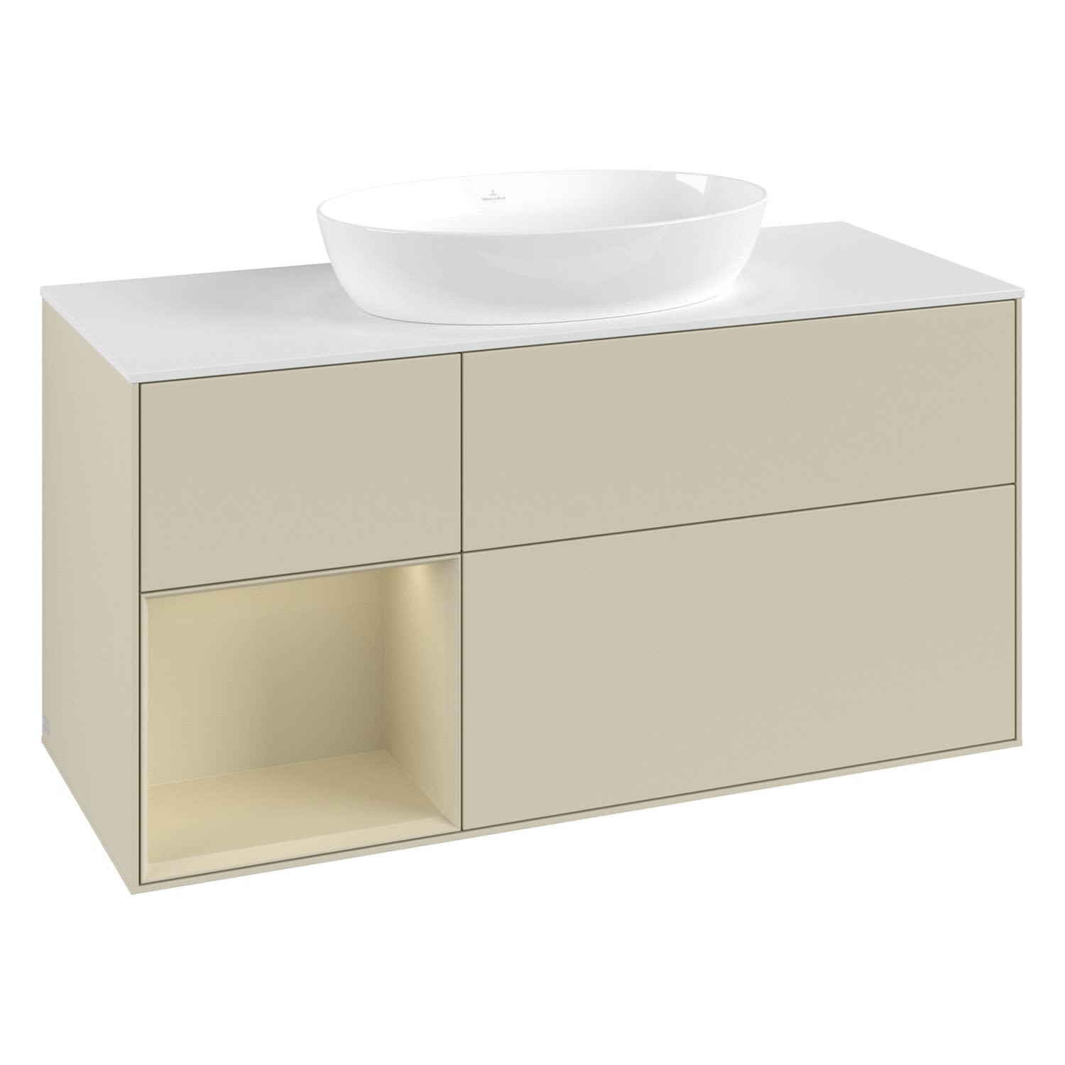 Villeroy & Boch Finion Waschtischunterschrank 120 cm mit Regalelement links, Abdeckplatte