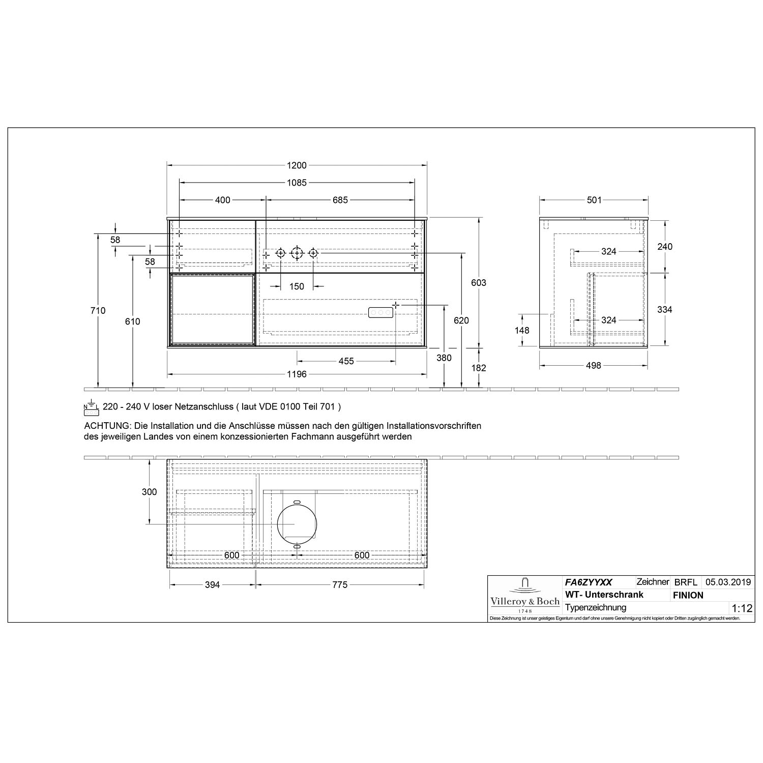 Definierte Waschbecken bitte separat bestellen (ein Beispiel finden Sie im Zubehör).