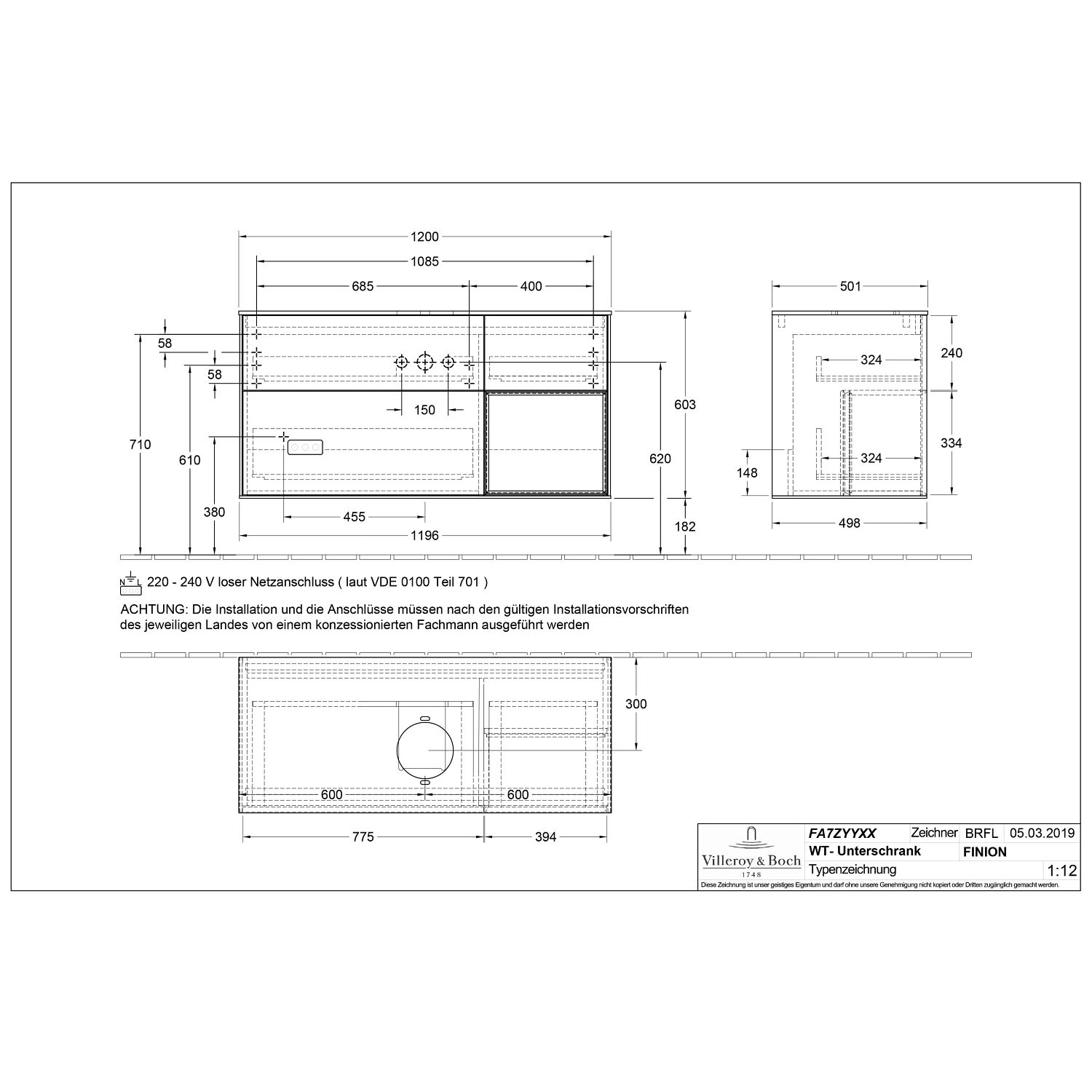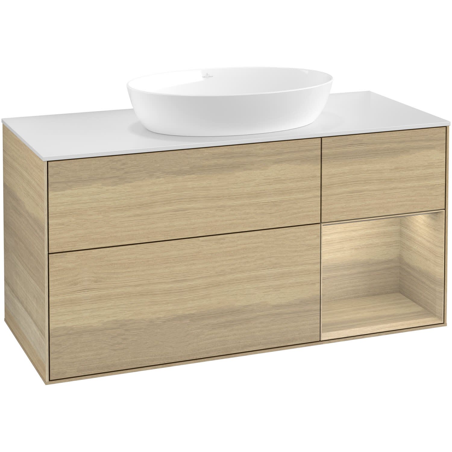 Villeroy & Boch Finion Waschtischunterschrank 120 cm mit Regalelement rechts, Abdeckplatte