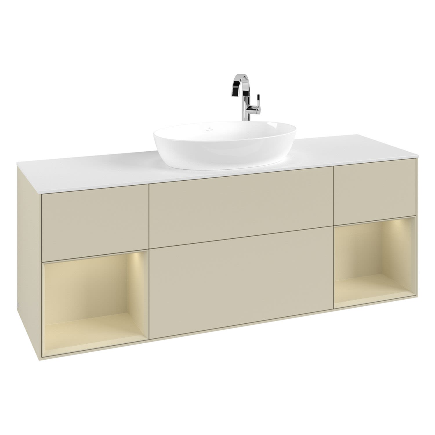 Villeroy & Boch Finion Waschtischunterschrank 160 cm mit 2 Regalelementen, Abdeckplatte, Wandbeleuchtung