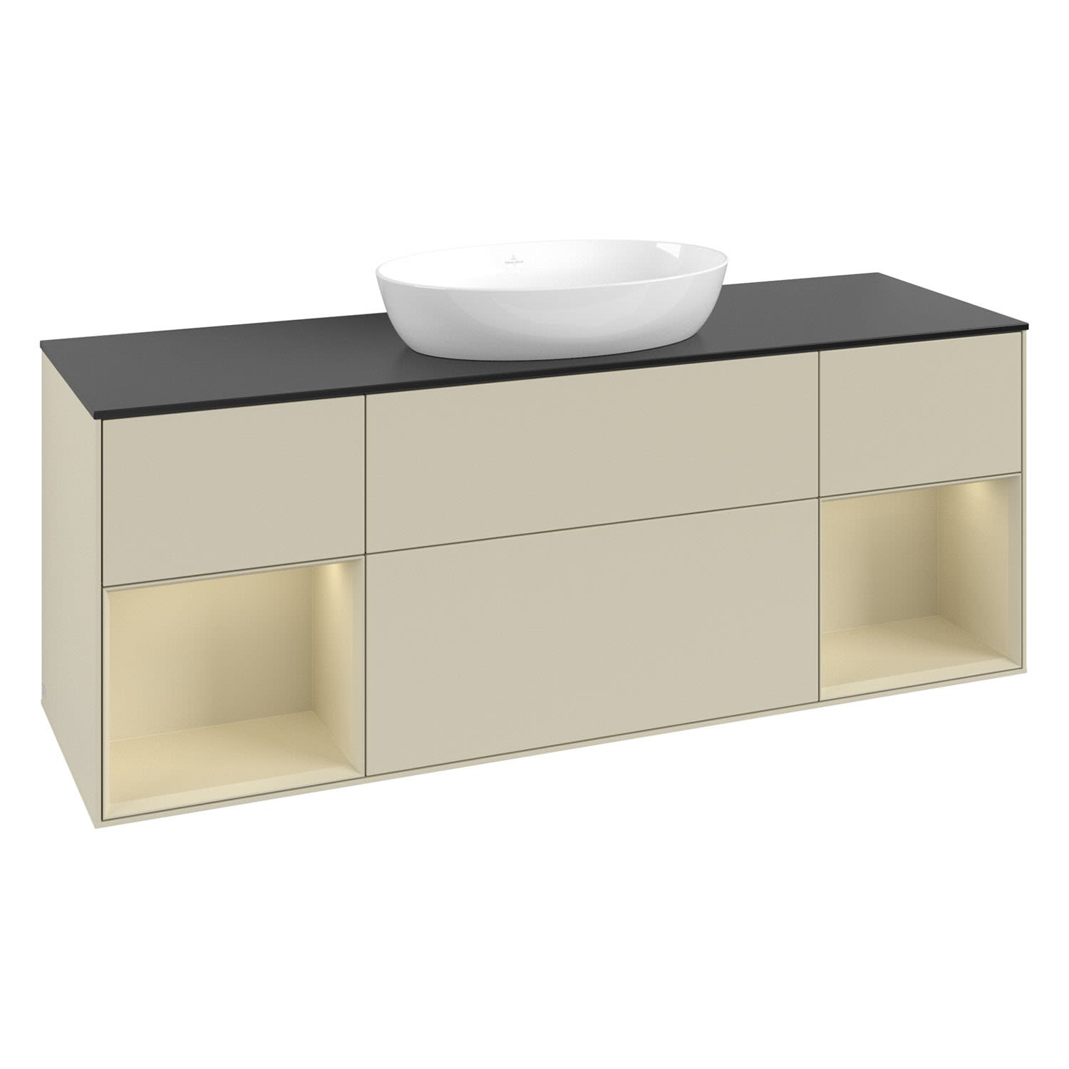 Villeroy & Boch Finion Waschtischunterschrank 160 cm mit 2 Regalelementen, Abdeckplatte, Wandbeleuchtung