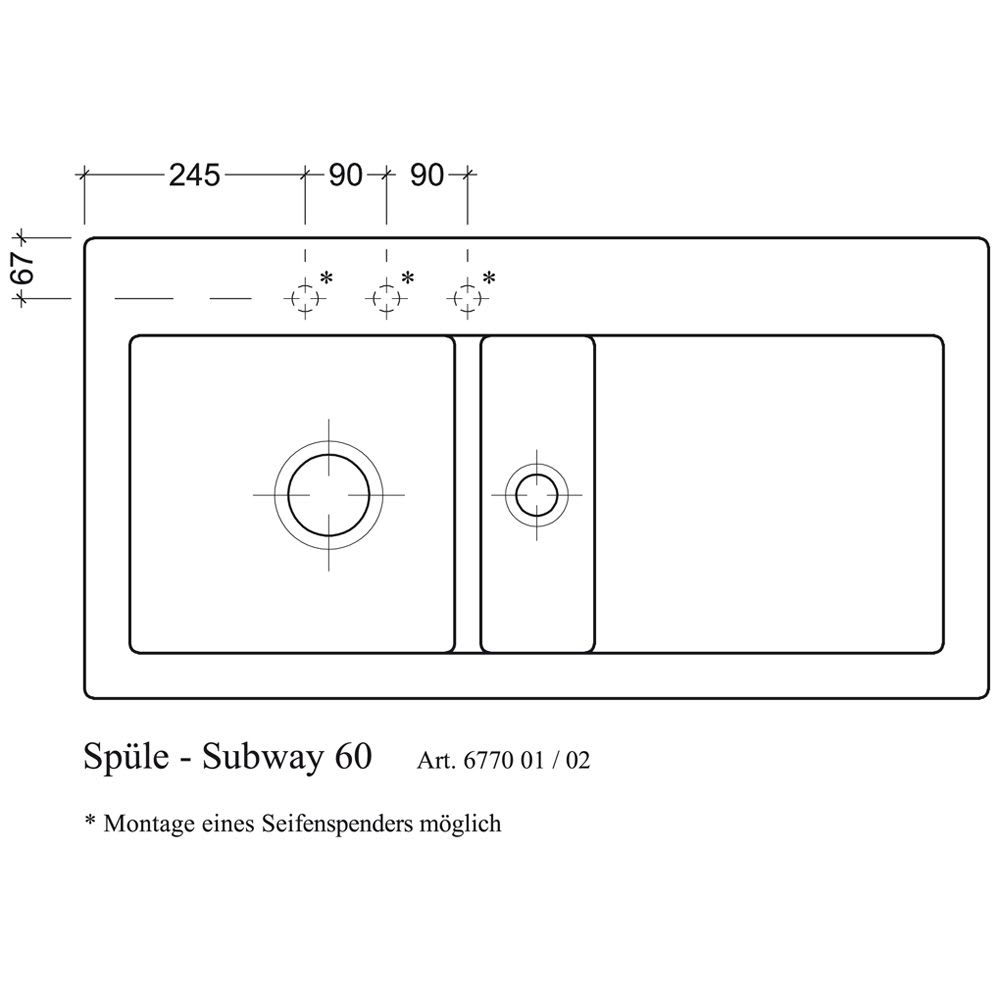 Villeroy & Boch Subway 60 Einbauspüle, Ablaufgarnitur mit Handbetätigung, Becken links