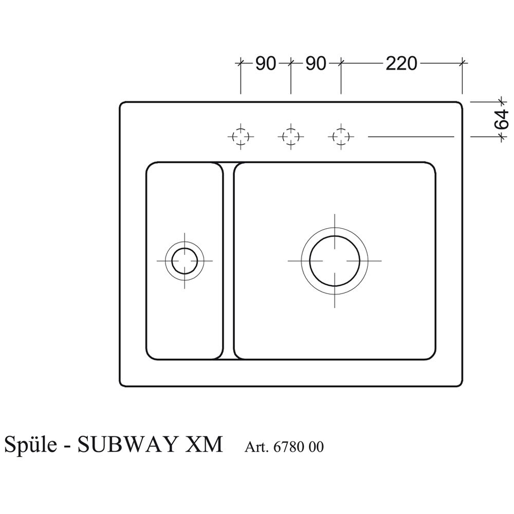Villeroy & Boch Subway 60 XM Einbauspüle, Ablaufgarnitur mit Handbetätigung