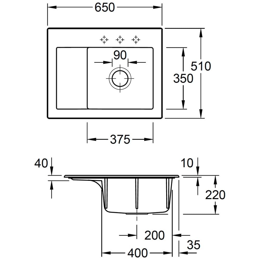 - Spüle Becken rechts inklusive Ablaufgarnitur mit Excenterbetätigung