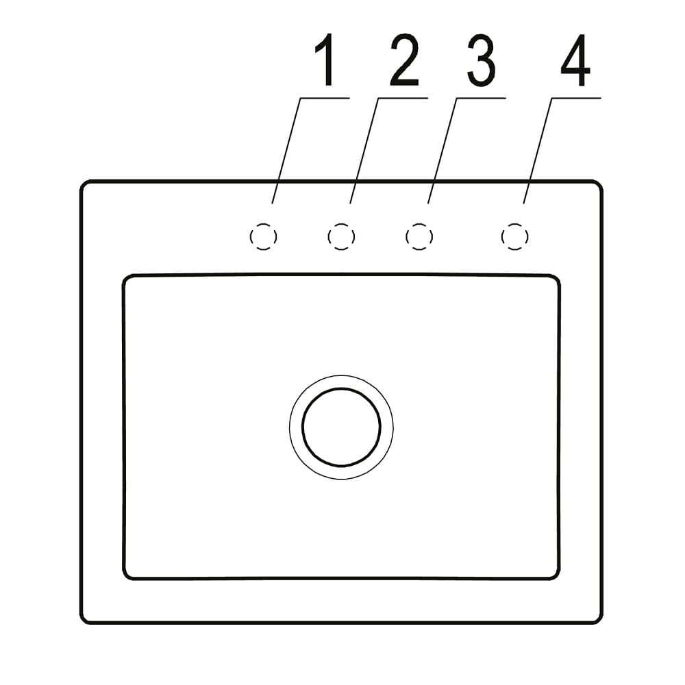 - Aussparung der Arbeitsplatte: gemäß mitgelieferter Montageschablone 57 x 48 cm