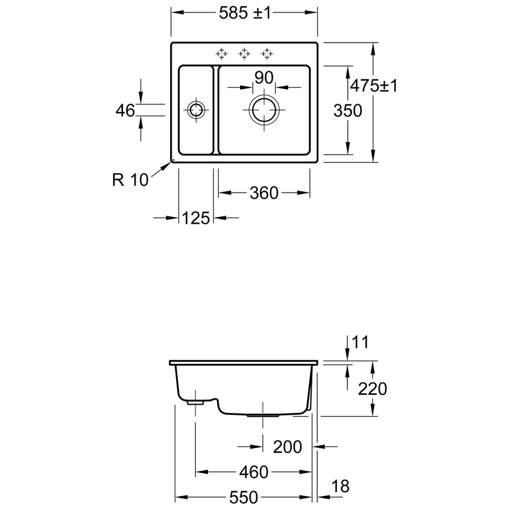 - ohne Hahnlochbohrung