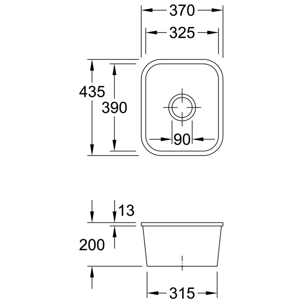 - Aussparung der Arbeitsplatte: gemäß mitgelieferter Montageschablone 31 x 37,6 cm