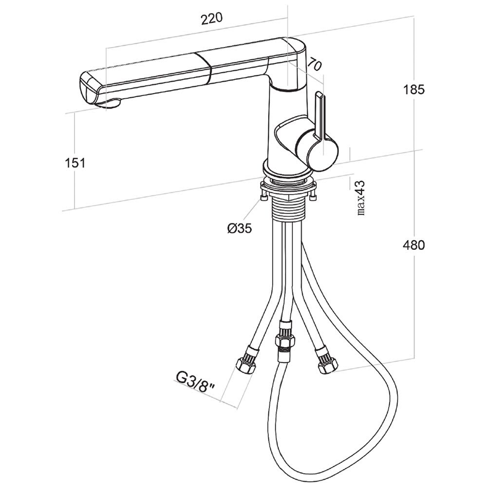 - herausziehbare Handbrause für maximale Bewegungsfreiheit und Komfort beim Abspülen
