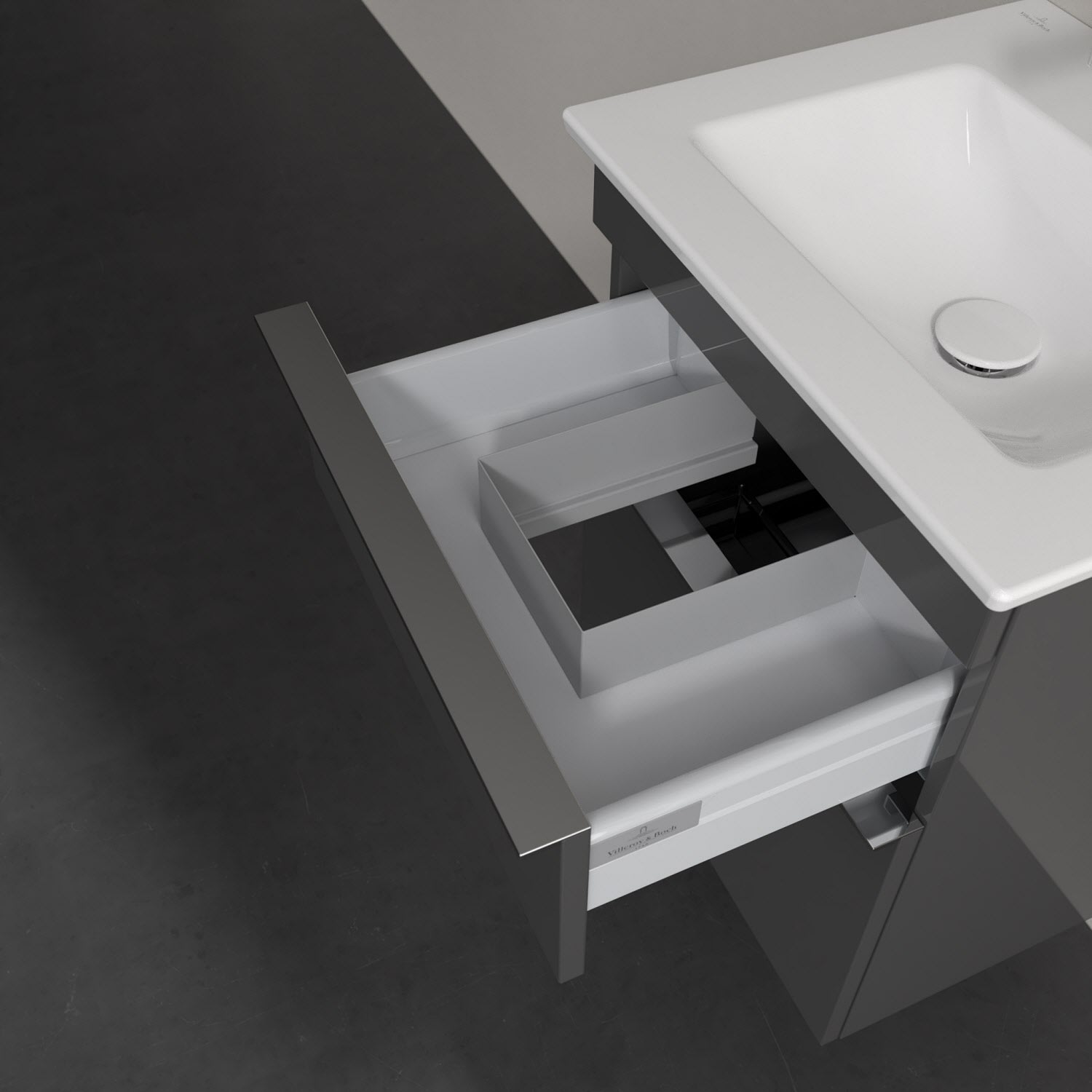 - kein Umfallen oder Verrutschen von Pflegeprodukten in den Schubladen dank rutschhemmendem Boden