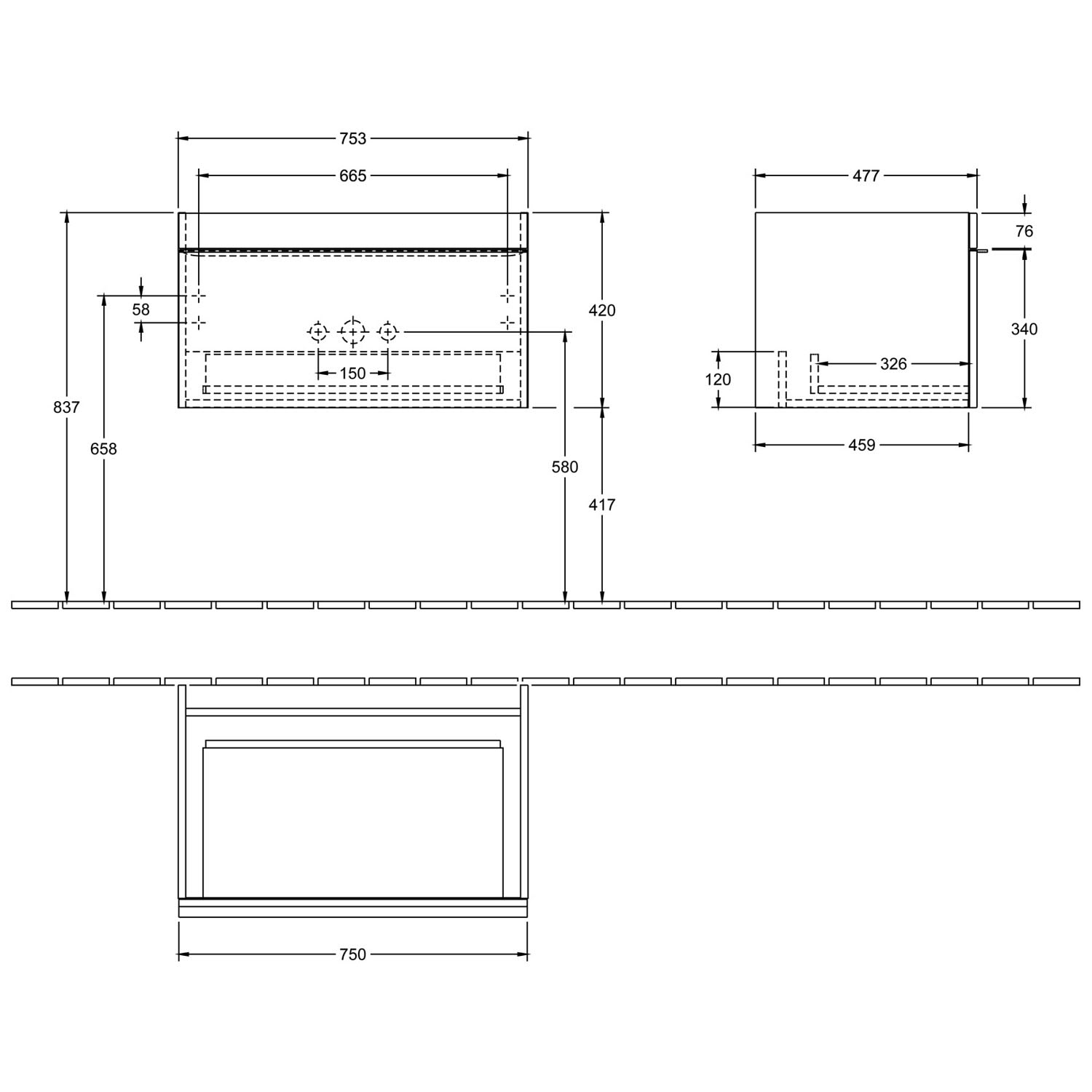 Villeroy & Boch Venticello Waschtischunterschrank 75,3 x 42 cm, 1 Auszug