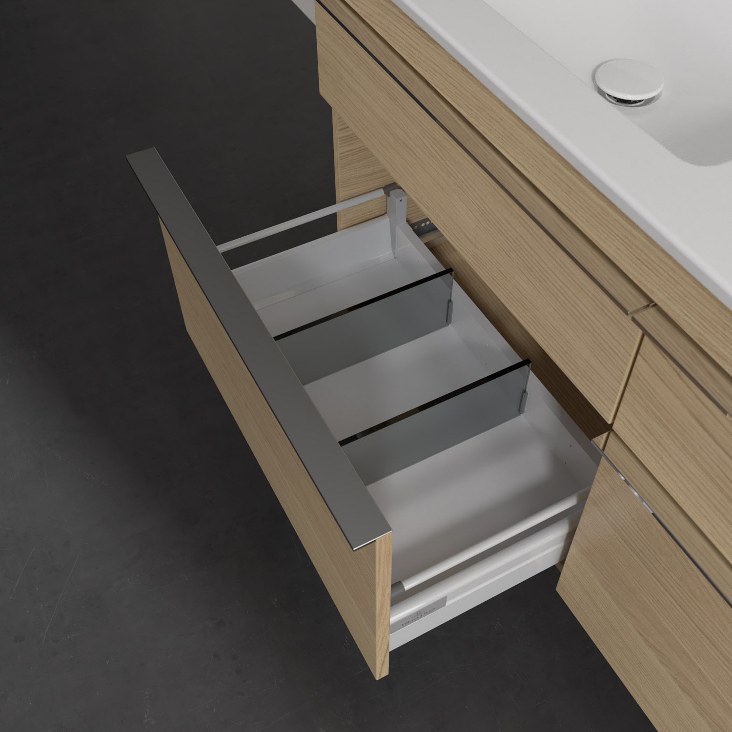 - kein Umfallen oder Verrutschen von Pflegeprodukten in den Schubladen dank rutschhemmendem Boden