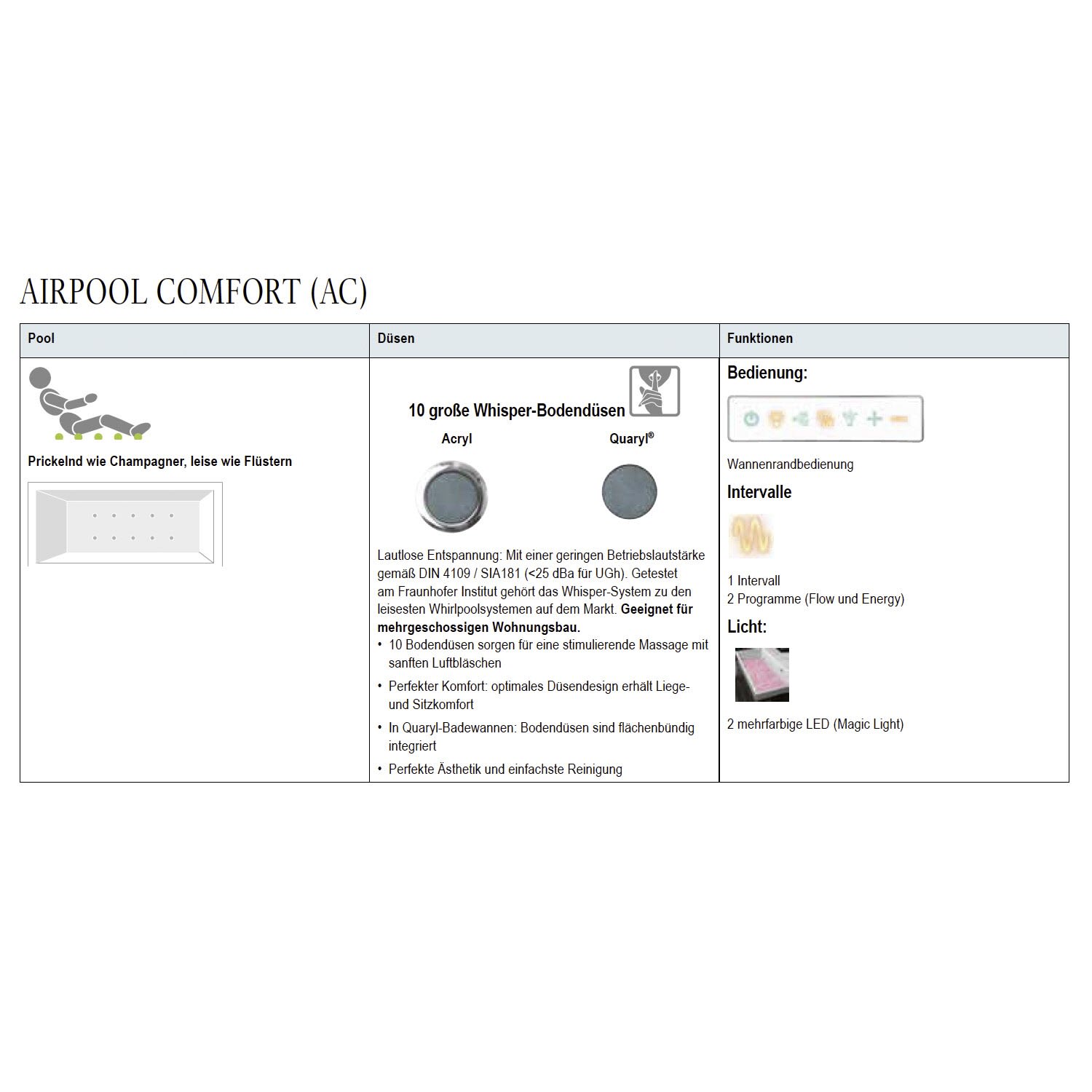 - 10 gleichmäßig angeordnete große Whisper-Bodendüsen für eine stimulierende Massage mit sanften Luftbläschen