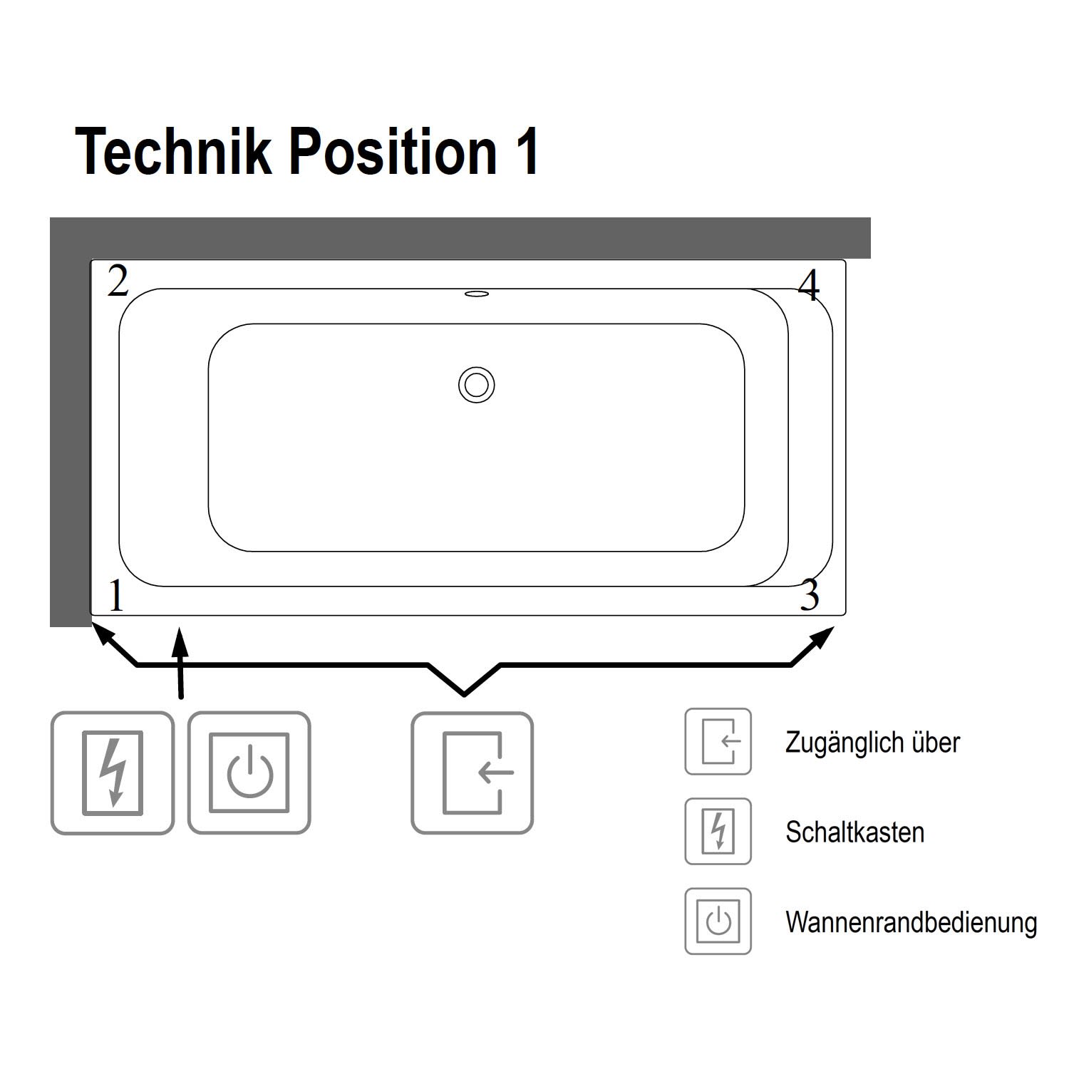 Villeroy & Boch Architectura Duo Badewanne 190 x 90 cm, Airpool Entry, Technik Position 1