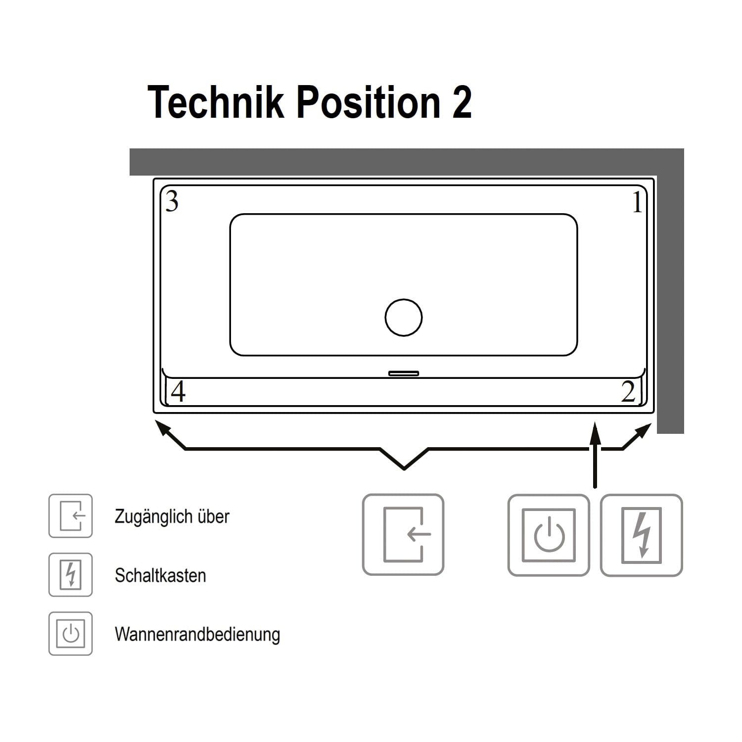 Villeroy & Boch Collaro Einbaubadewanne 190 x 90 cm, Special Combipool Active, Technikposition 2