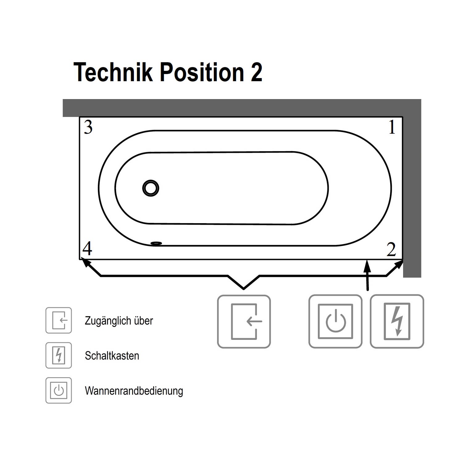 Funktionen der Wannenrandbedienung:
