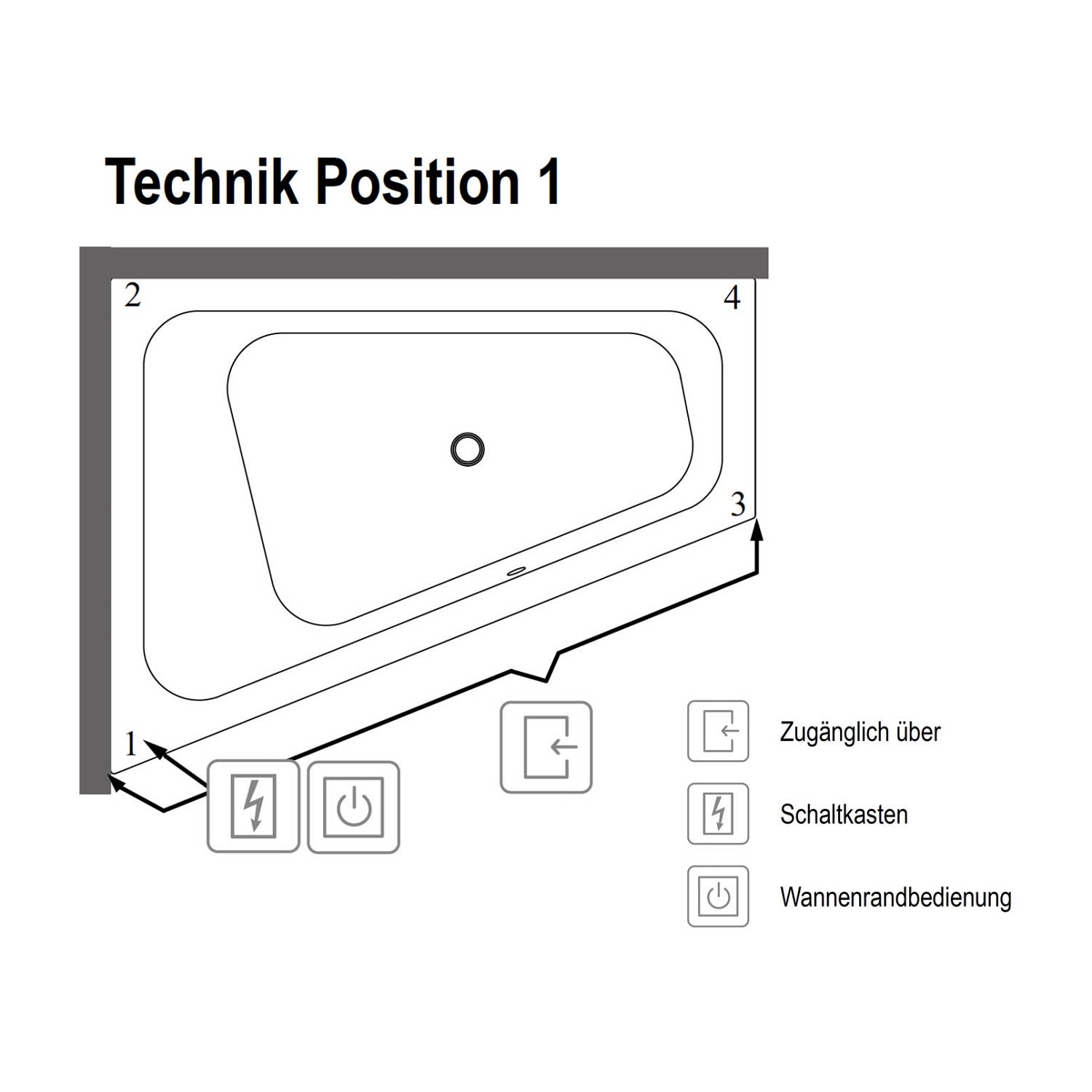 Funktionen der Wannenrandbedienung: