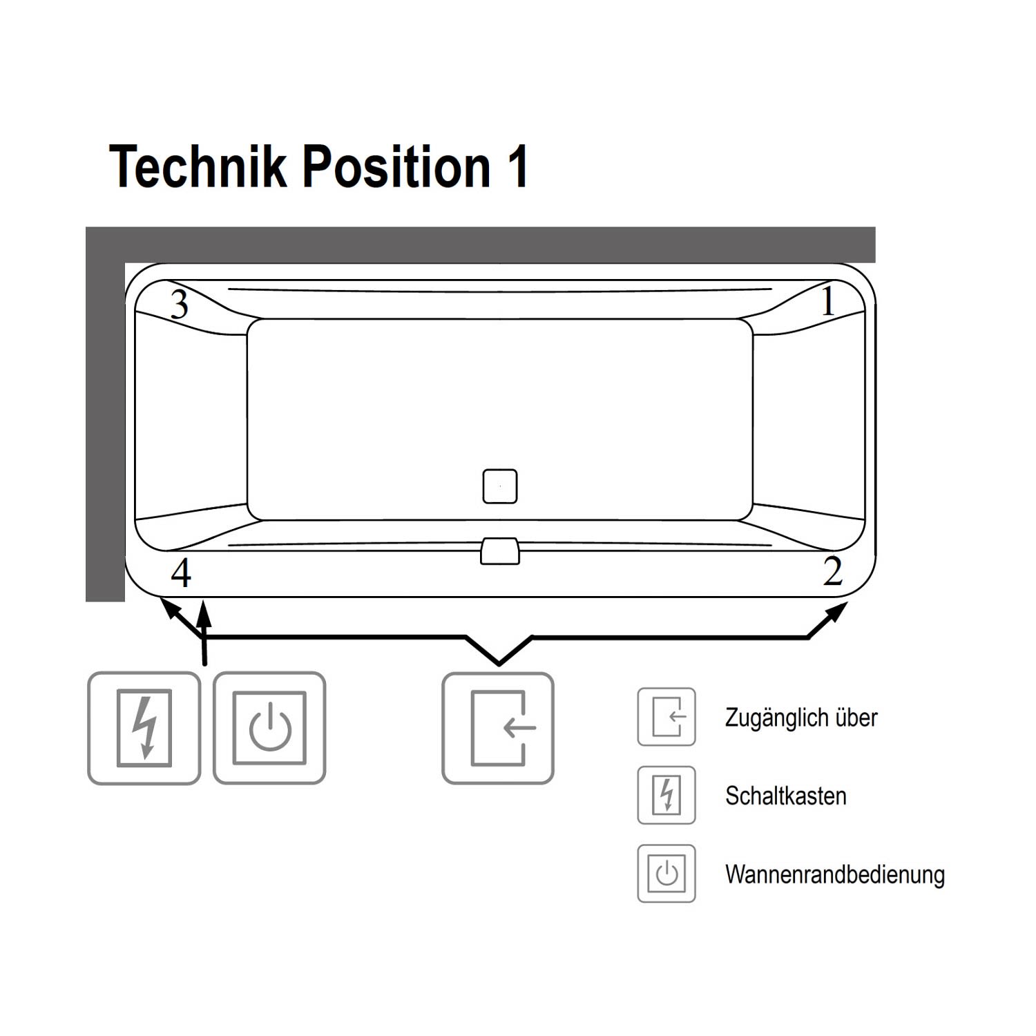 Villeroy & Boch Squaro Edge 12 Duo Badewanne 180 x 80 cm, Hydropool Comfort, Technik Position 1