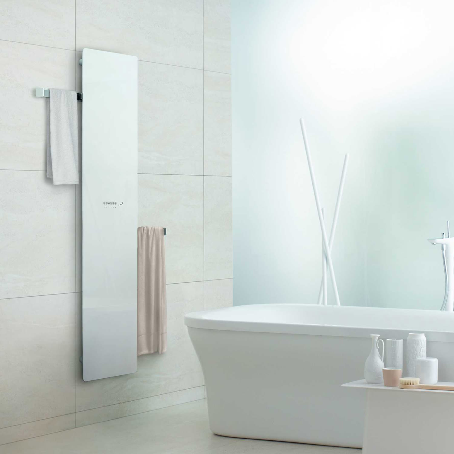 - Bedienung des Infrarot- Glasheizkörpers über einfaches Touchpanel oder separatem batteriebetriebenen Infrarot-Steuergerät möglich