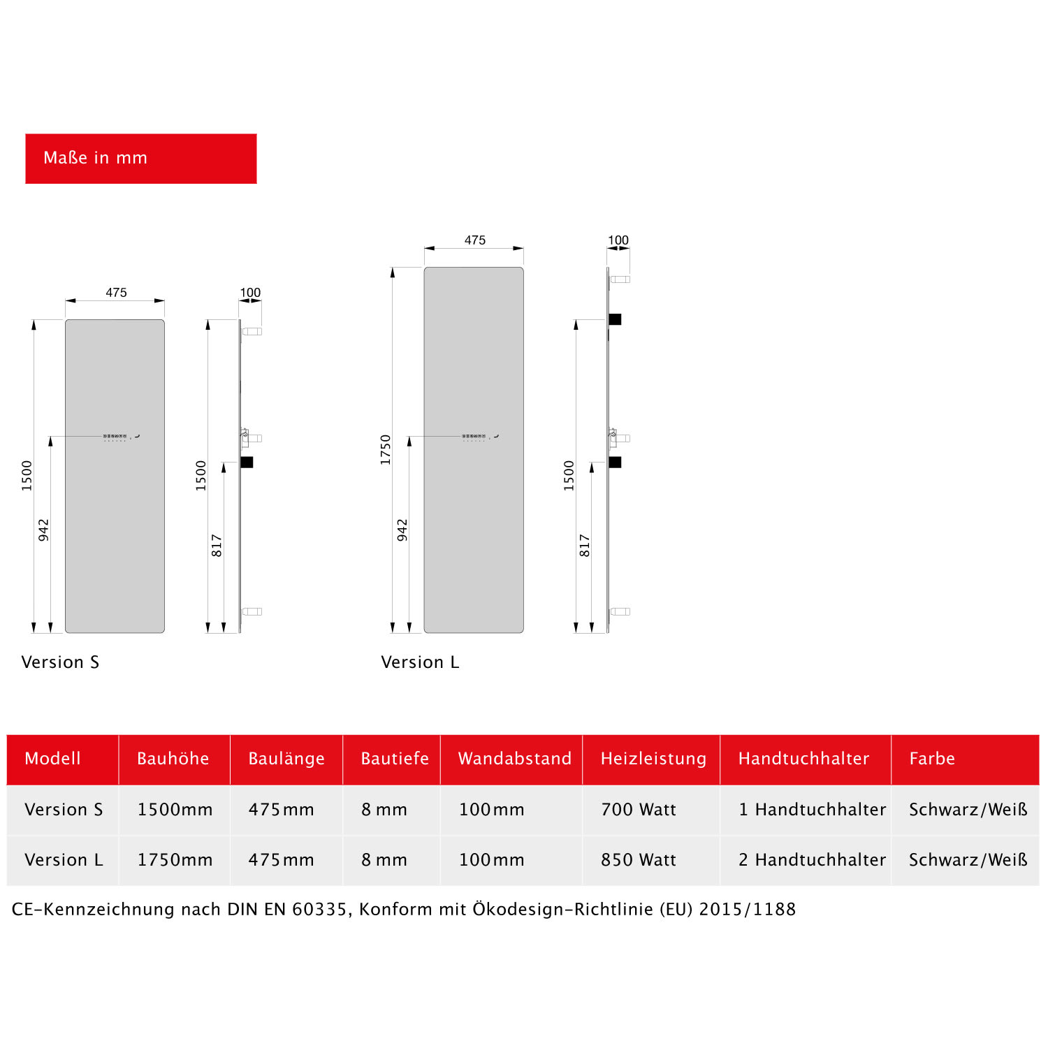 - mit 2 Handtuchhaltern aus Edelstahl poliert zur Befestigung auf der Rückseite auf vorgegebenen Höhen