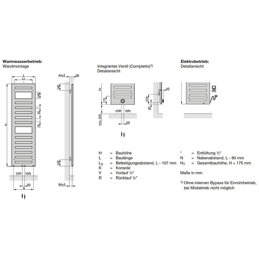 - Montagezubehör im Farbton des Heizkörpers