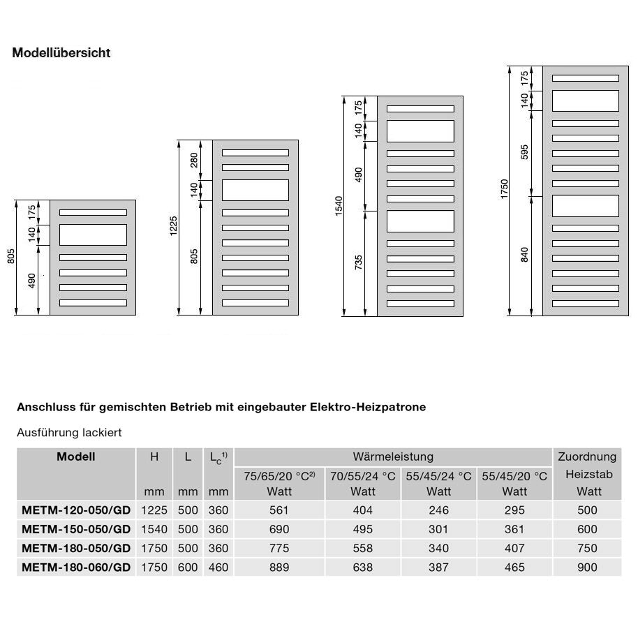 Zehnder Metropolitan Spa METM-150-050/GD Badheizkörper 50 x 154 cm