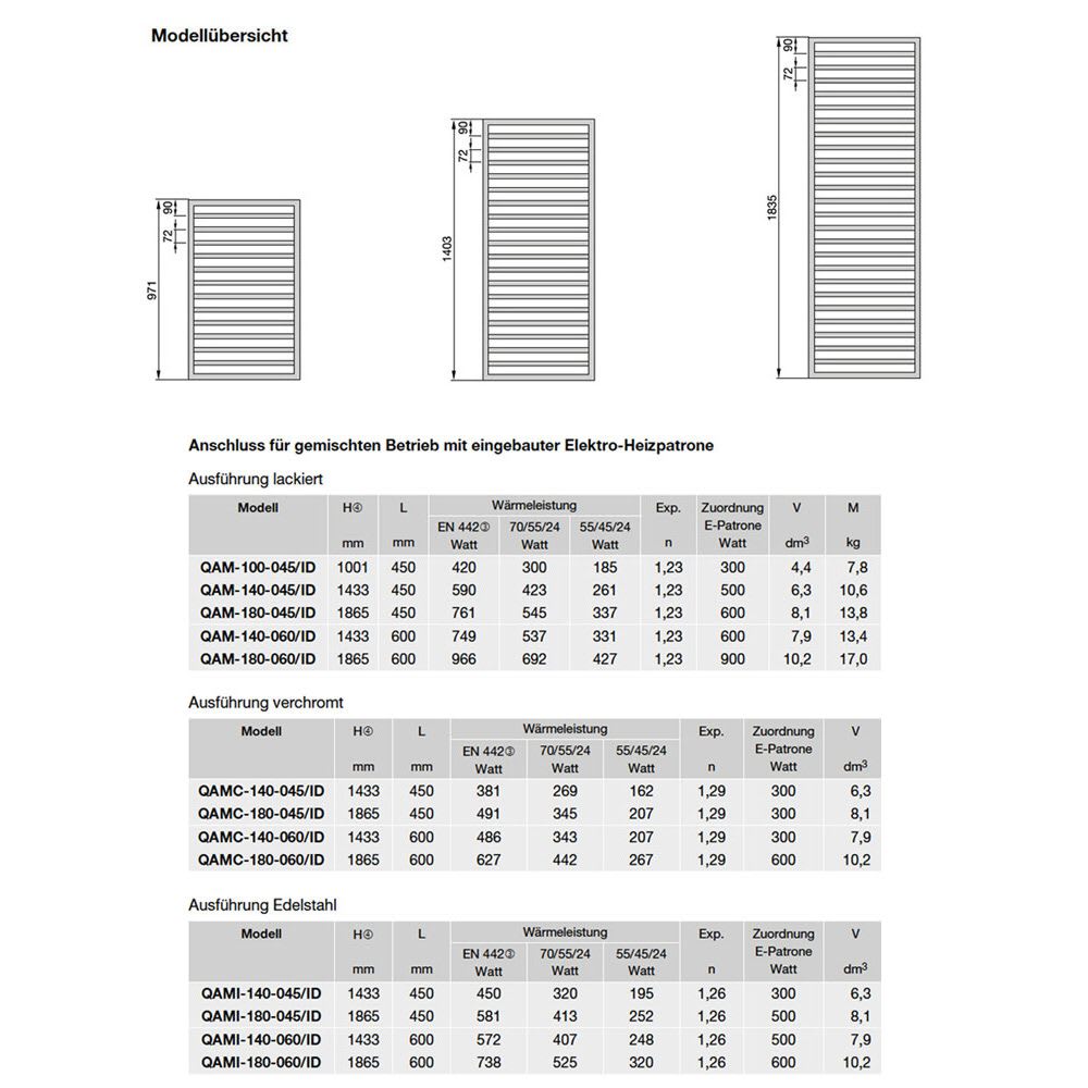 Zehnder Quaro QAI-180-045 Badheizkörper 45 x 183,5 cm