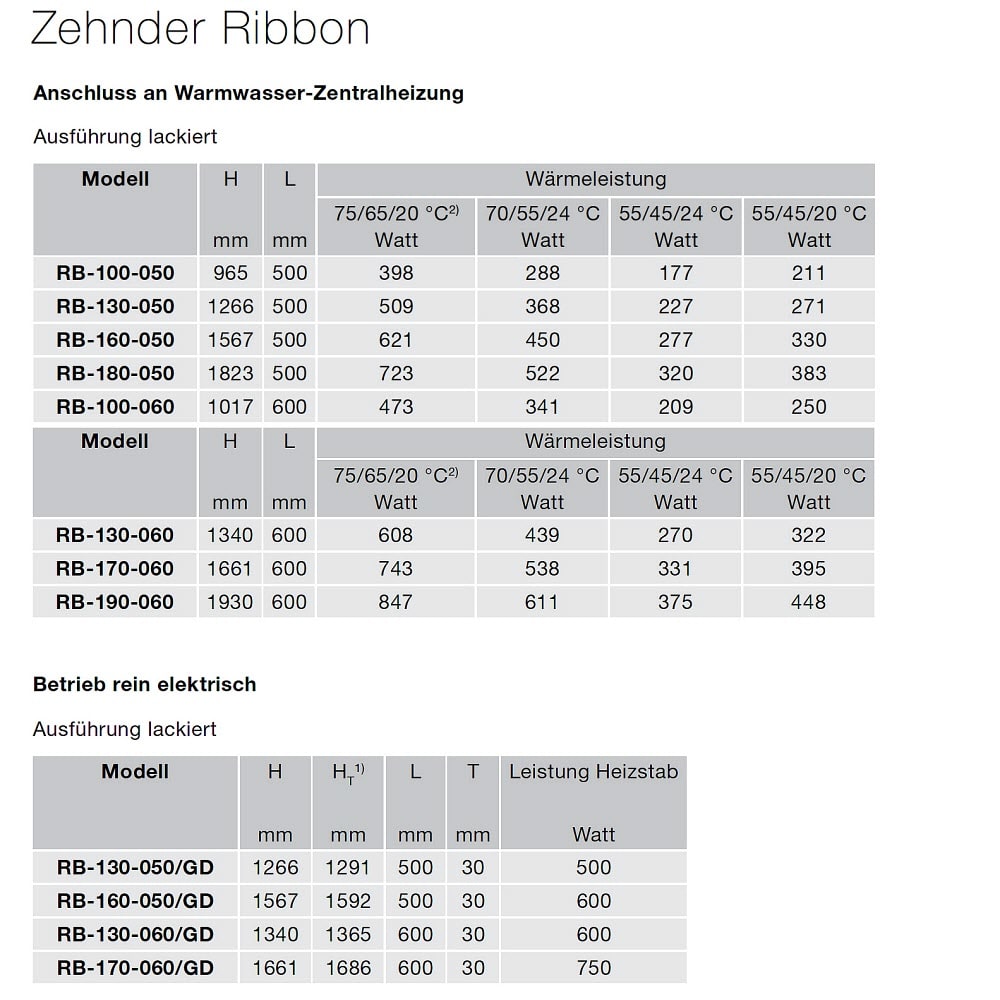 Zehnder Ribbon RB-100-050 Badheizkörper 50 x 96,5 cm