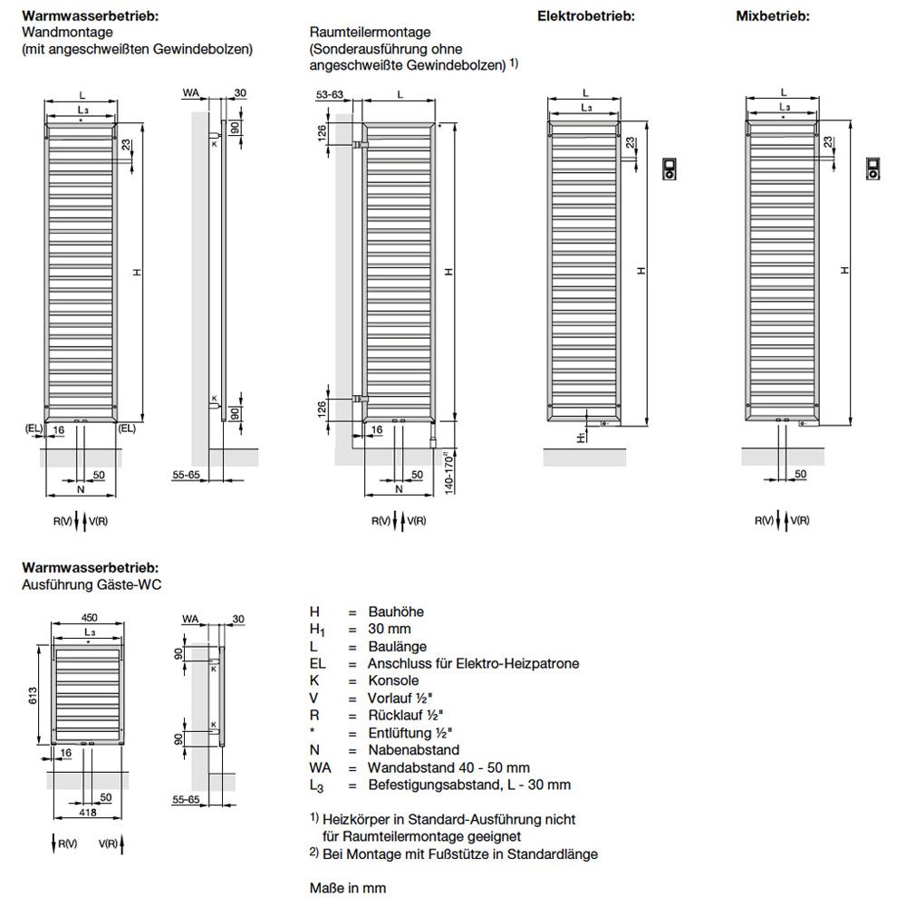 - Montagezubehör im Farbton des Heizkörpers