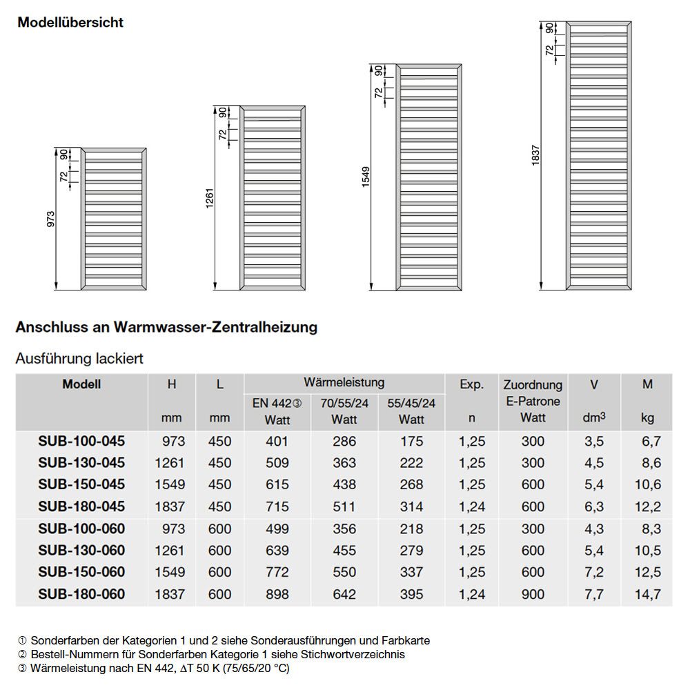 - Montagezubehör im Farbton des Heizkörpers