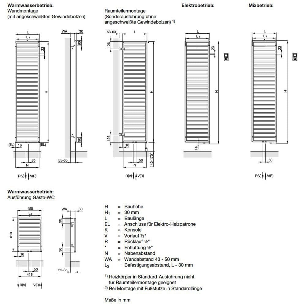 - Montagezubehör im Farbton des Heizkörpers