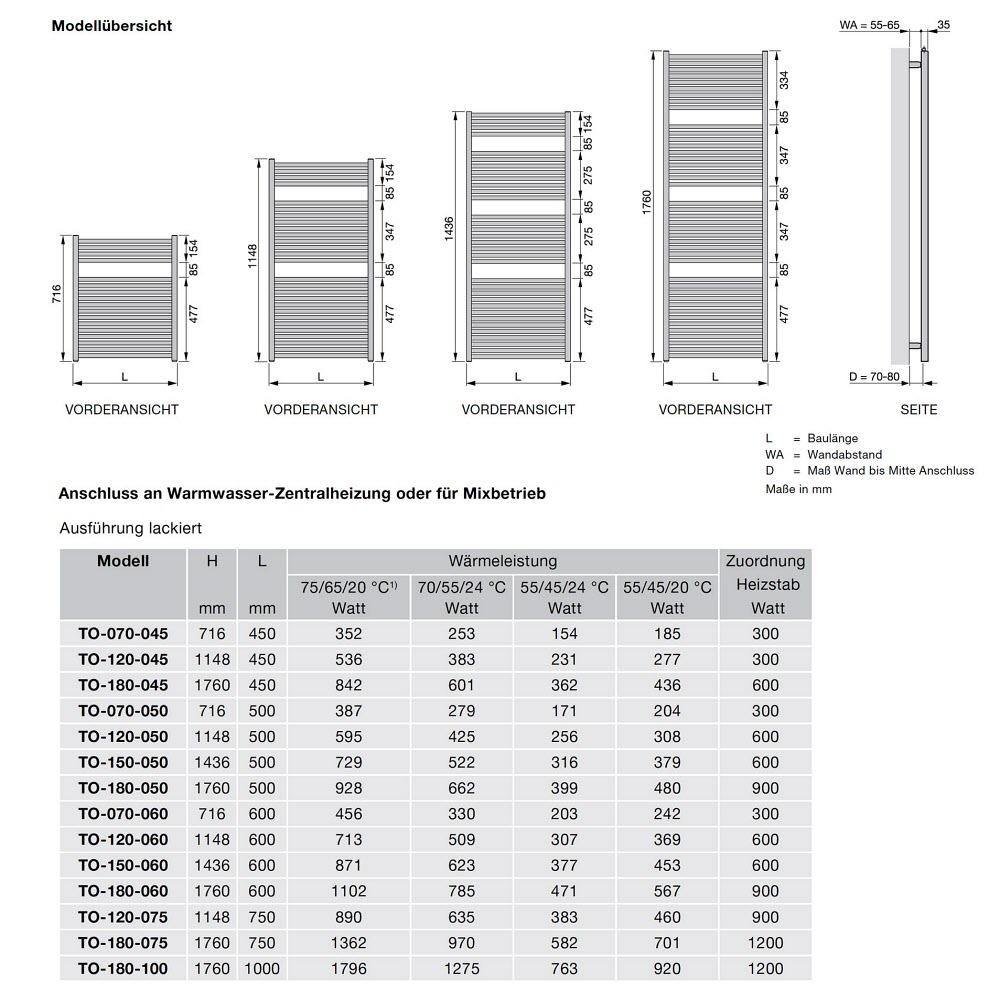 Zehnder Toga TO-180-050 Badheizkörper 50 x 176 cm