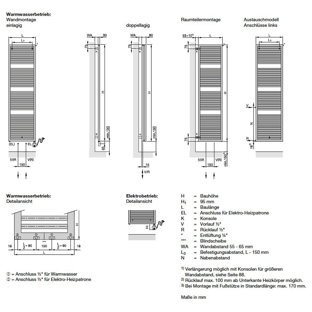 - Anschluss an Warmwasserheizung oder für gemischten Betrieb